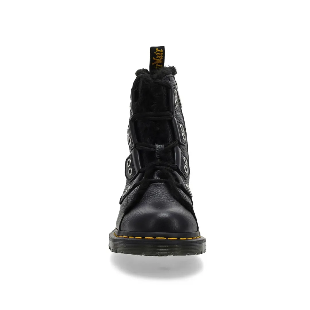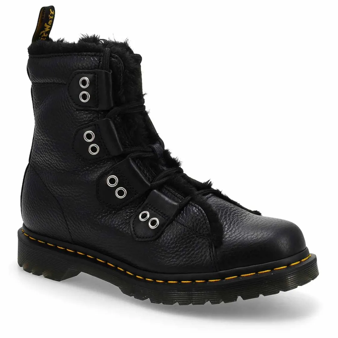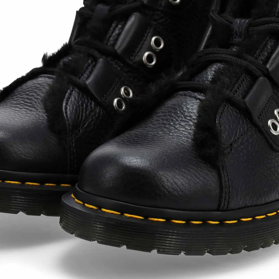 Here to stir everything up, Dr. Martens’ new 1460 Ghillie boot reimagines their Original silhouette with a statement lace-to-toe construction and oversized laces. Built from Milled Nappa leather, the boots are welted on a rugged BEN outsole secured with our unmistakable yellow welt stitching. The hiker aesthetic is rounded off with hardware trims on the Ghillie laces and a warm faux fur lining. Winter boots, remixed.