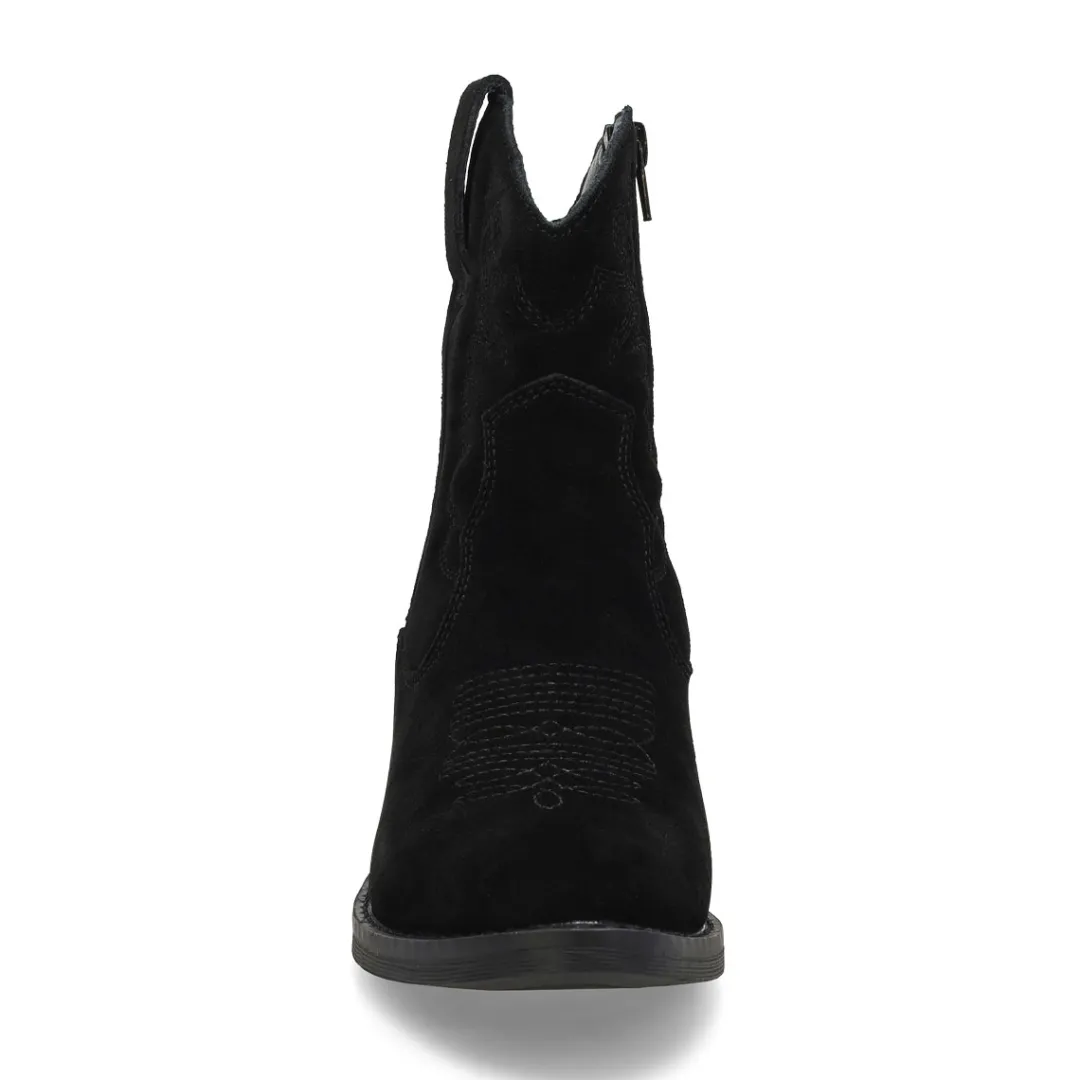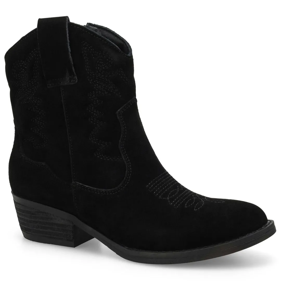Step into effortless Western charm with the Aaliyah dark brown Ankle Western Boot from Maddison by SoftMoc. Imagine the soft suede embracing your foot, the mid-calf silhouette enhances your style. With a sturdy block heel, and easy inner zip closure, these booties combine comfort and confidence. Perfect for making every outfit unforgettable!