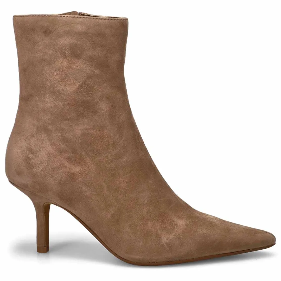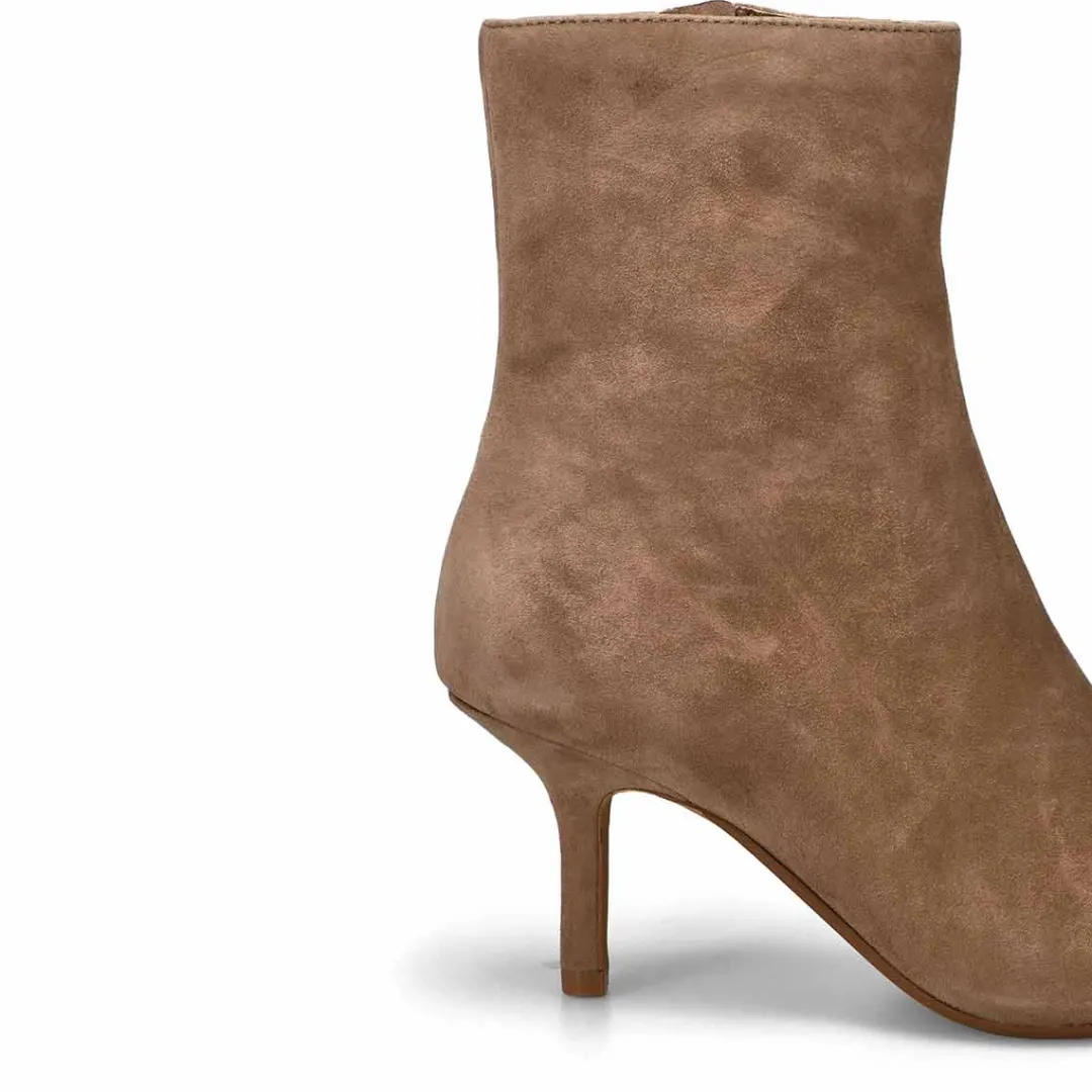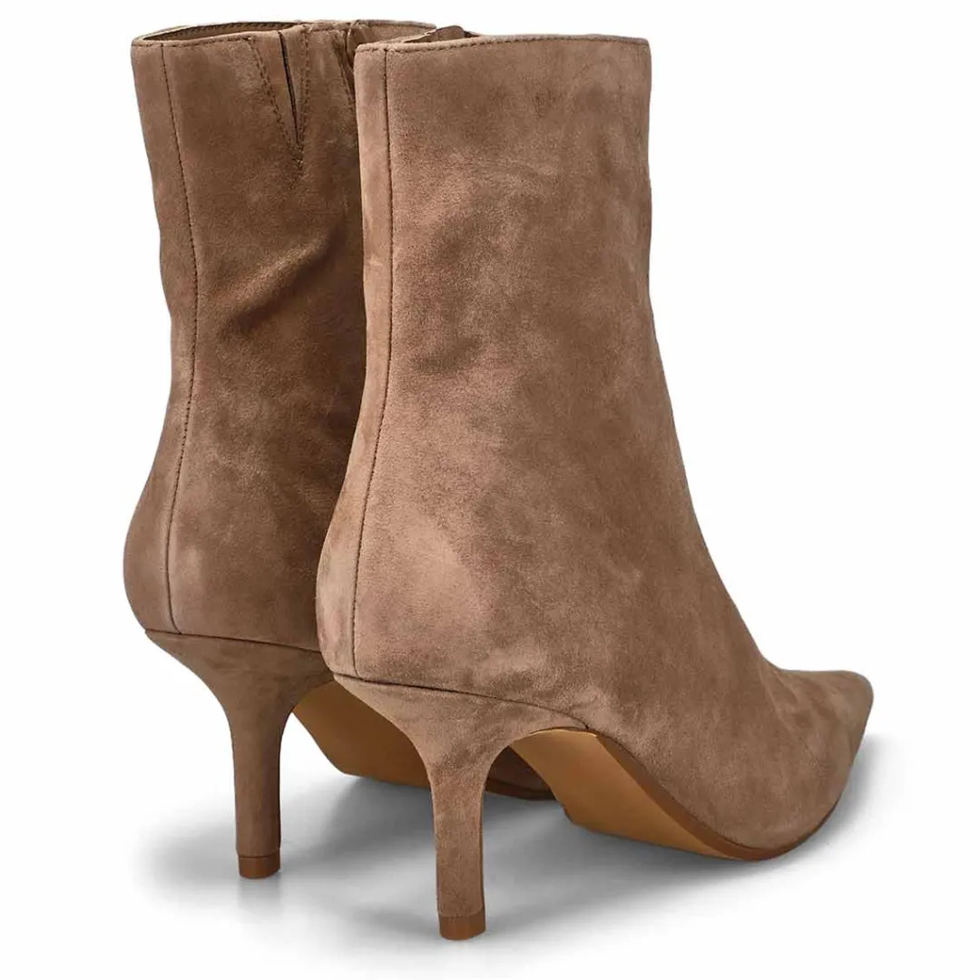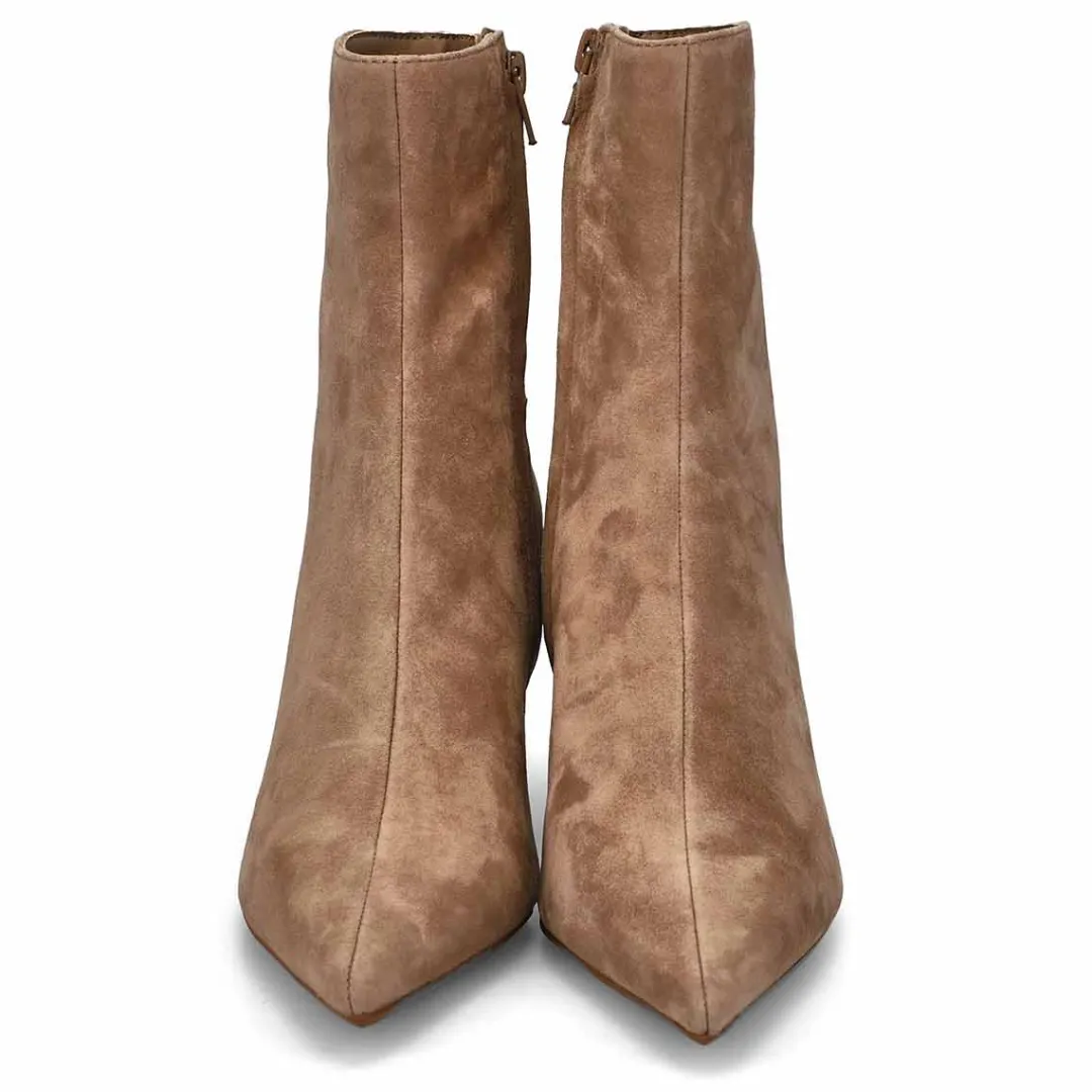 A point toe heeled boot, the Alston suede taupe dress boot heeled from Steve Madden is the answer to every smart-casual styling dilemma this season! Prepped to complement all your dresses and skirts, this pair is grounded atop slim heels for a feminine finish. You will want to make the Alston a must-have for your wardrobe this season!
