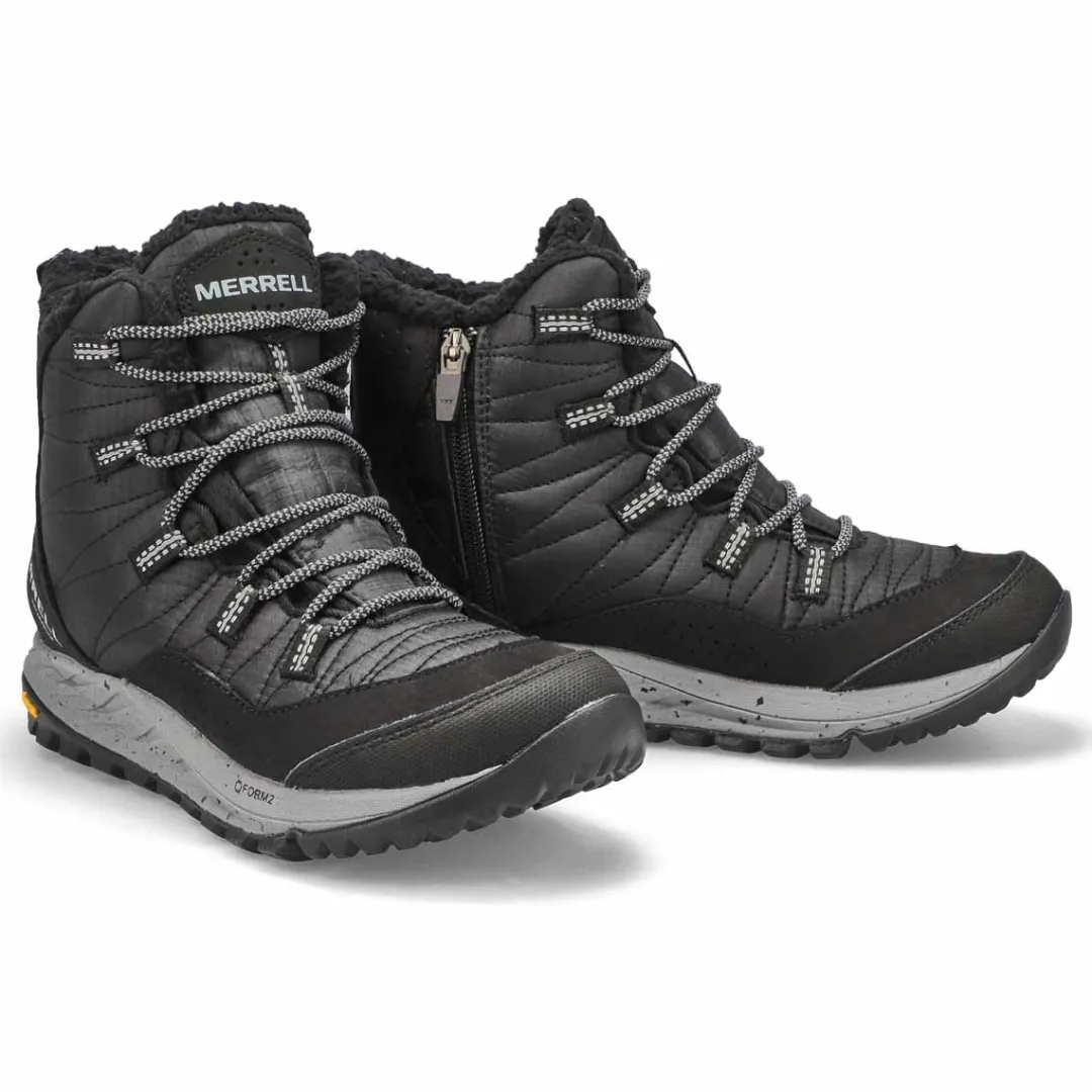 Featuring sneaker-light comfort and hiker-like durability, The Antora Sneaker Boot from Merrell offers the perfect cold-weather escape vehicle for when you’re ready to answer the call of the wild. Waterproof membrane seals out water and lets moisture escape. Lightweight EVA foam midsole for stability and comfort. Vibram Icetrek for grip in winter conditions.