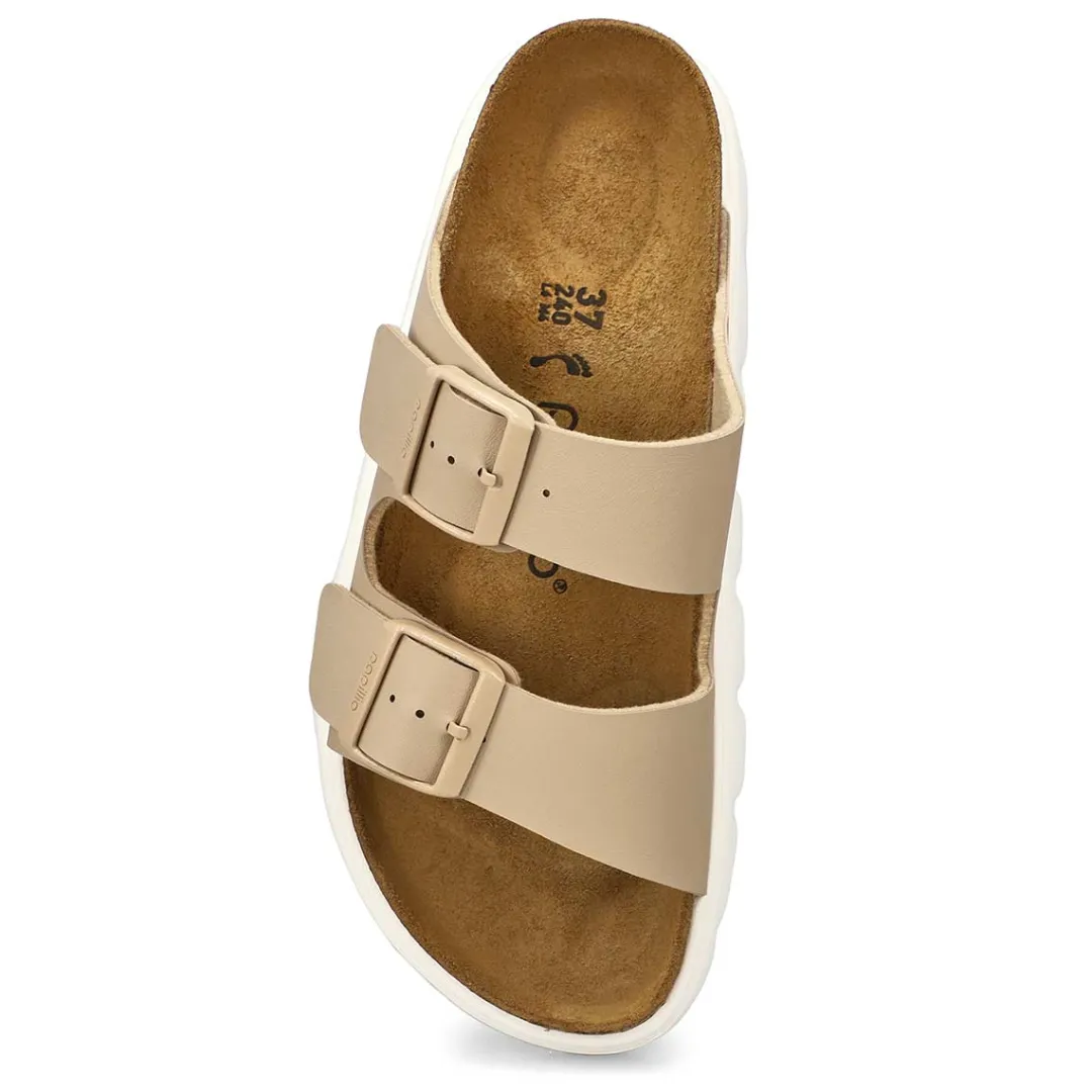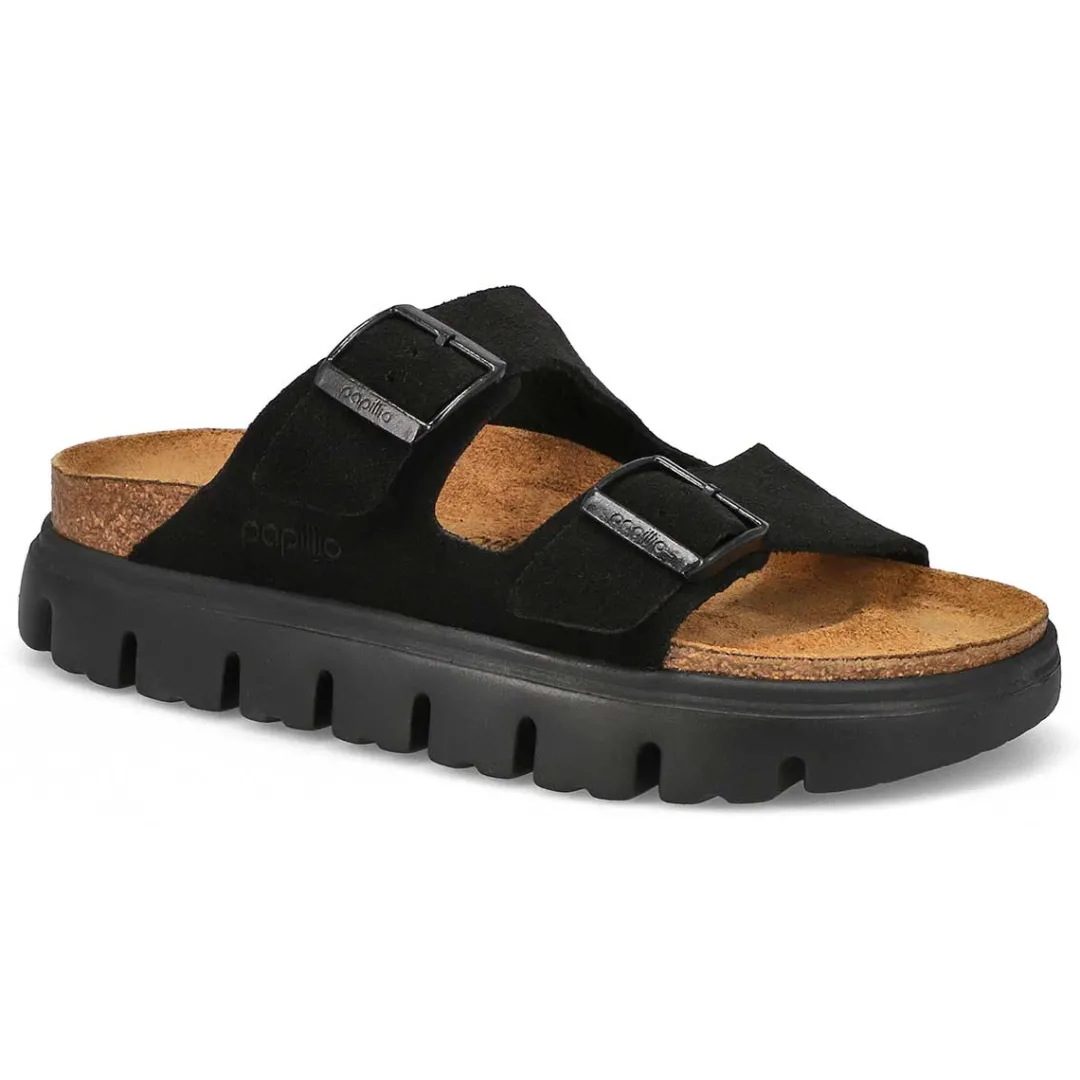 The Arizona Chunky black platform sandal from Birkenstock combines two of their most classic styles. Featuring the classic two-straps from the Arizona and a stylish platform sole with extra deep tread line from the Papillio, you’re guaranteed to stay comfortable and look stylish all day long. The upper is made from Birko-Flor material. Made in Germany. Narrow width.