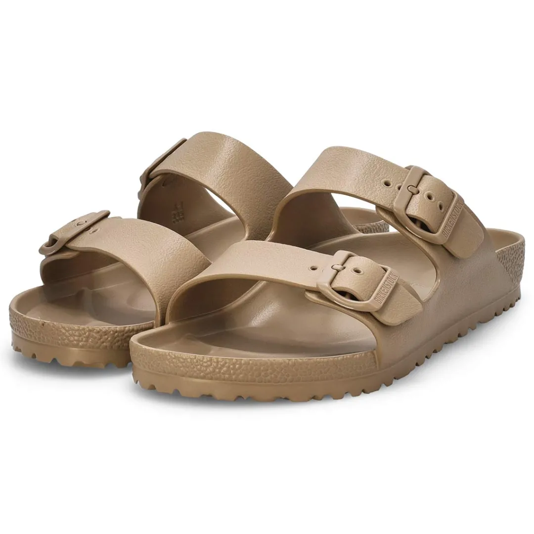 The Arizona EVA 2 strap upper from Birkenstock with a cushioned footbed provides excellent arch support. Your days will be filled with walking comfort, without compromising good looks and style. This Birkenstock sandal is a genuine classic, emphasizing the handcrafted and natural look of stylish sandals. A comfort legend and a fashion staple.