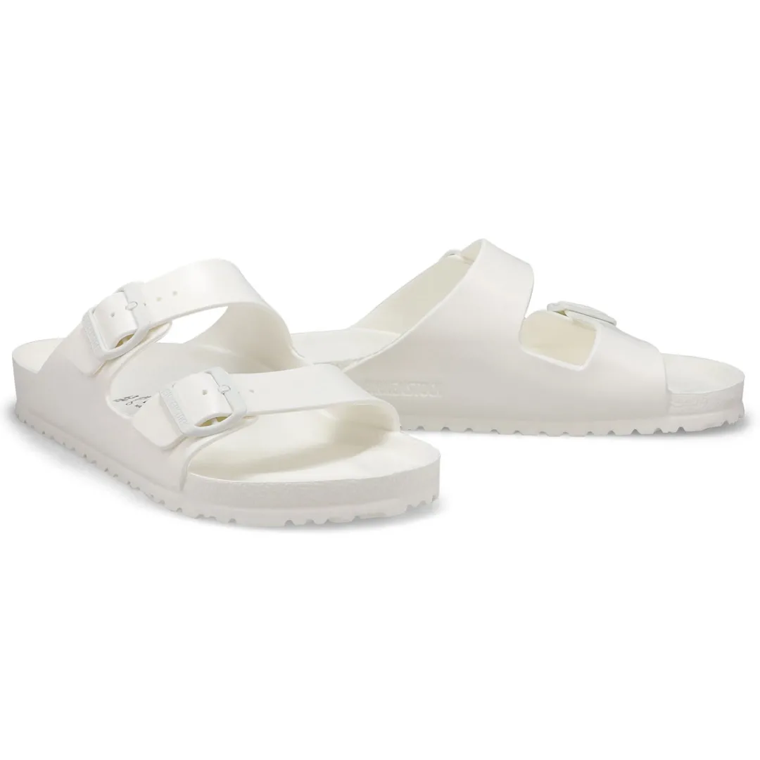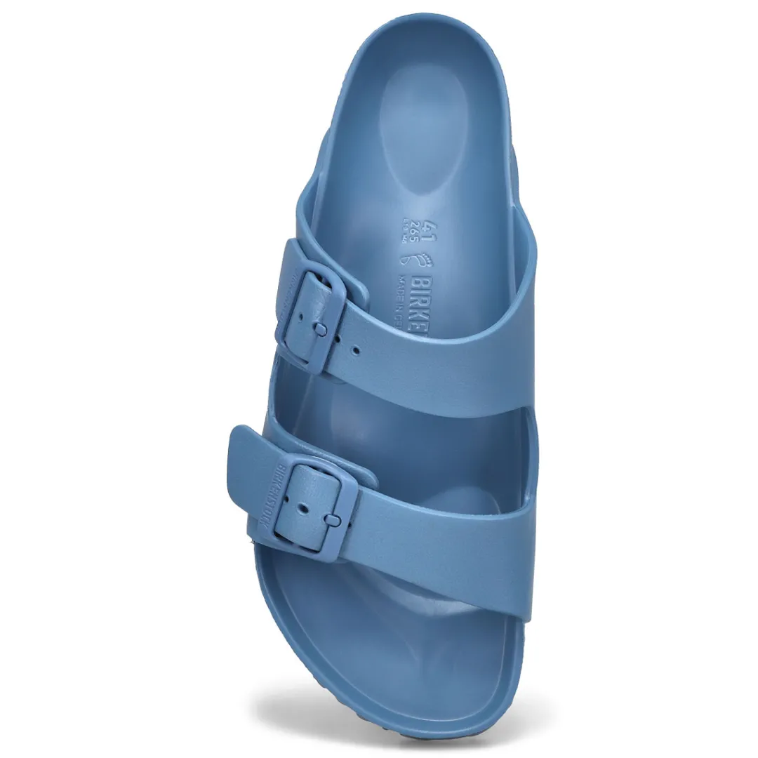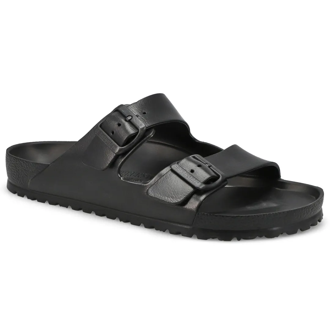 The Arizona EVA black 2-strap from Birkenstock with a cushioned footbed that provides excellent arch support. Your days will be filled with walking comfort, without compromising good looks and style. This Birkenstock sandal is a genuine classic, emphasizing the handcrafted and natural look of stylish sandals. A comfort legend and a fashion staple.