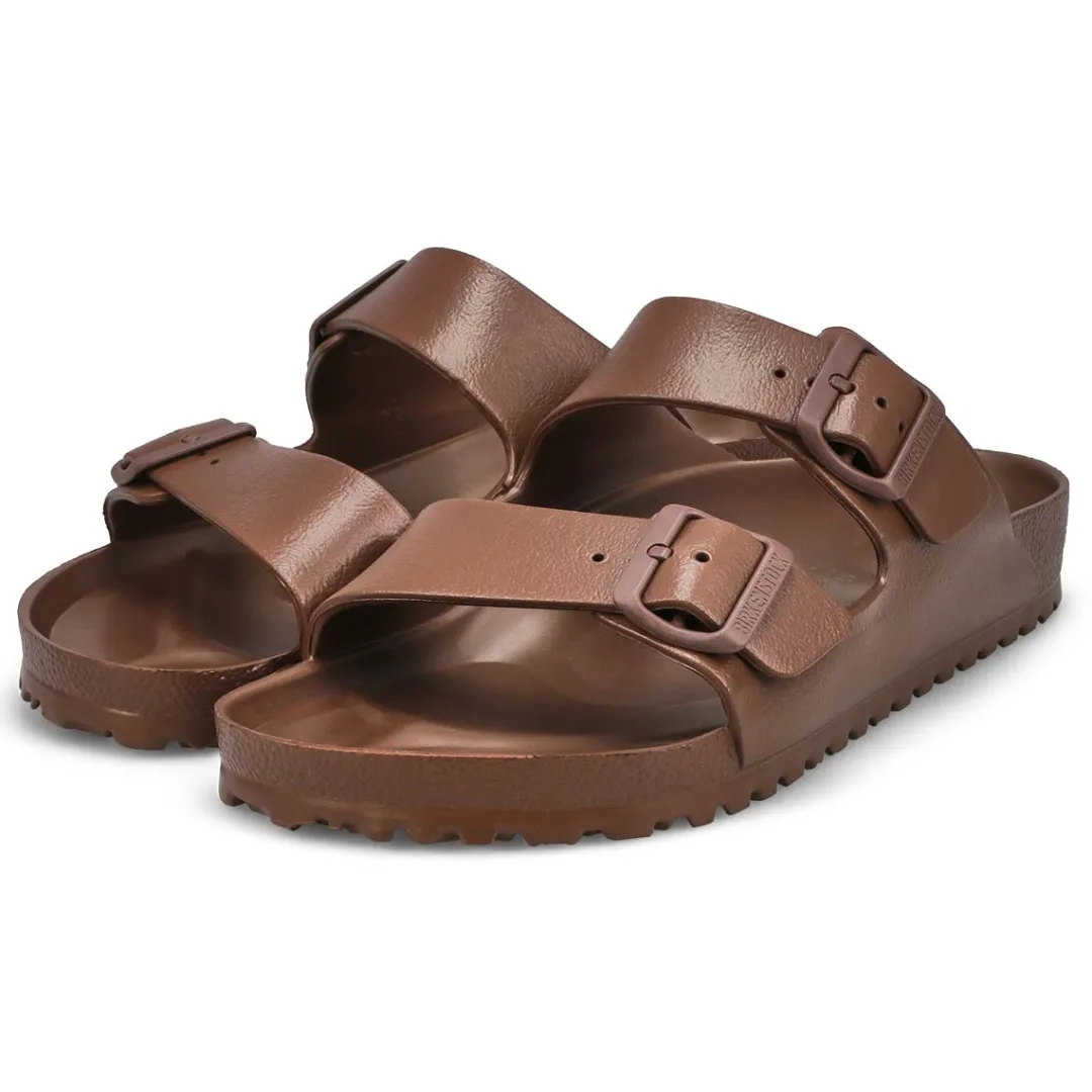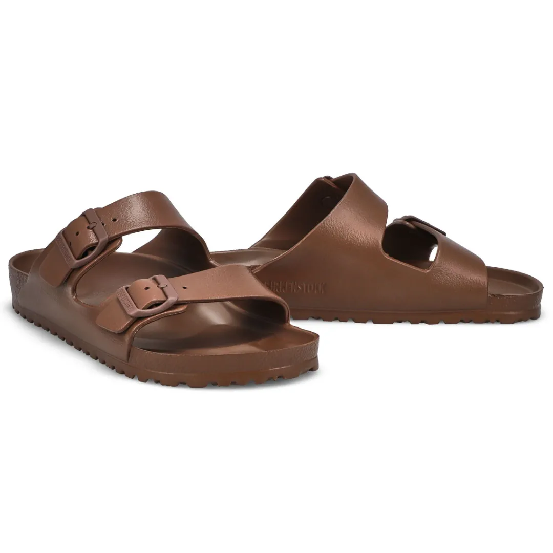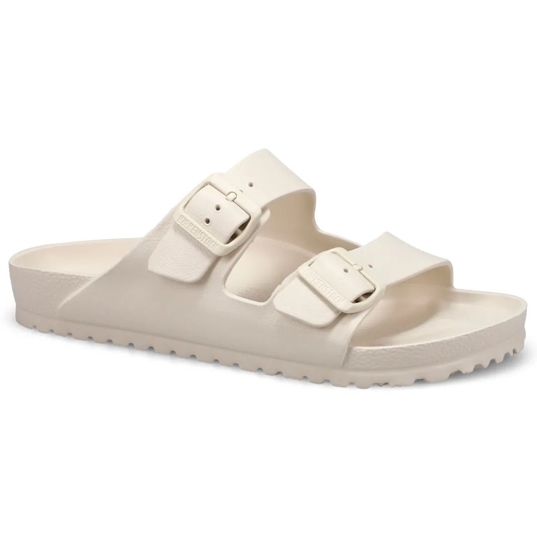 The Arizona EVA black 2-strap from Birkenstock with a cushioned footbed that provides excellent arch support. Your days will be filled with walking comfort, without compromising good looks and style. This Birkenstock sandal is a genuine classic, emphasizing the handcrafted and natural look of stylish sandals. A comfort legend and a fashion staple.