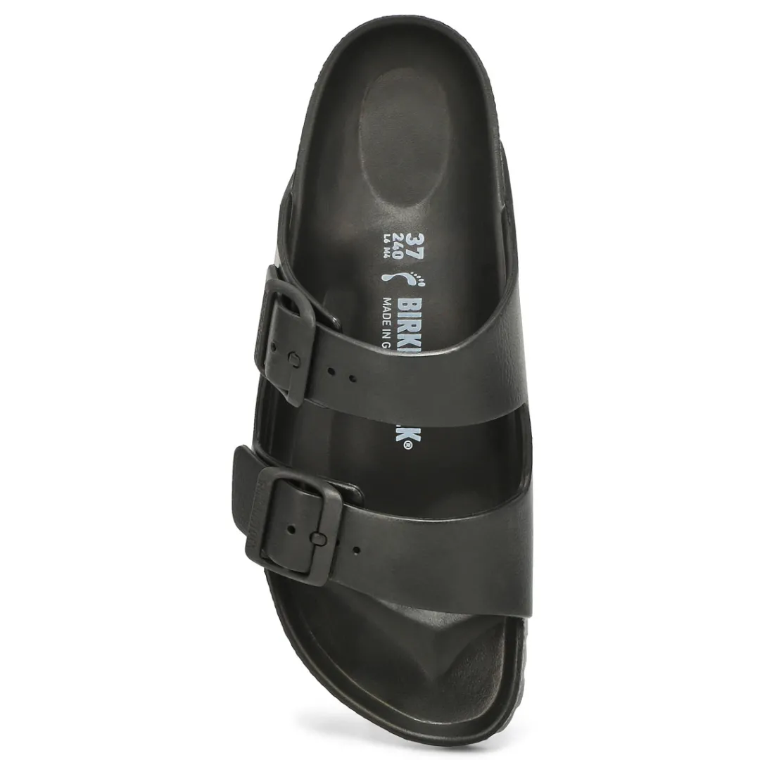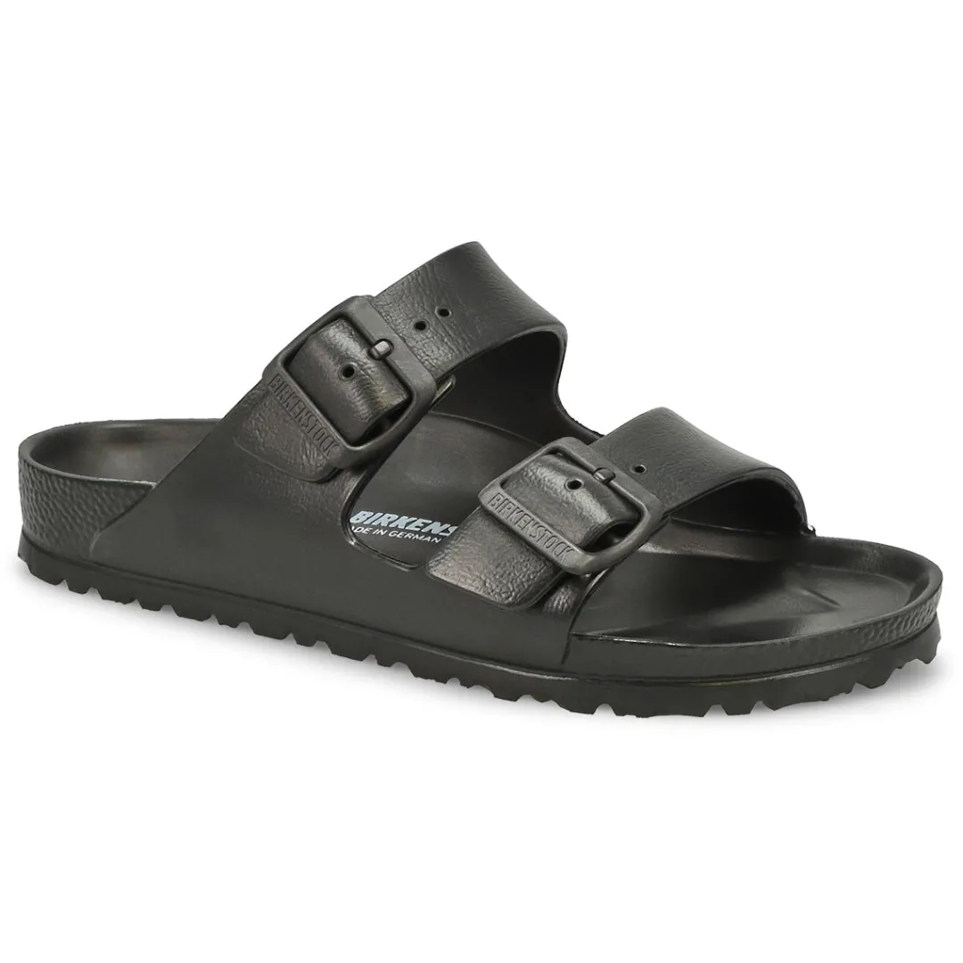 The Arizona EVA metallic anthracite 2 strap upper from Birkenstock with a cushioned footbed provides excellent arch support. Your days will be filled with walking comfort, without comprising good looks and style. This Birkenstock sandal is a genuine classic, emphasizing the handcrafted and natural look of stylish sandals. A comfort legend and a fashion staple.