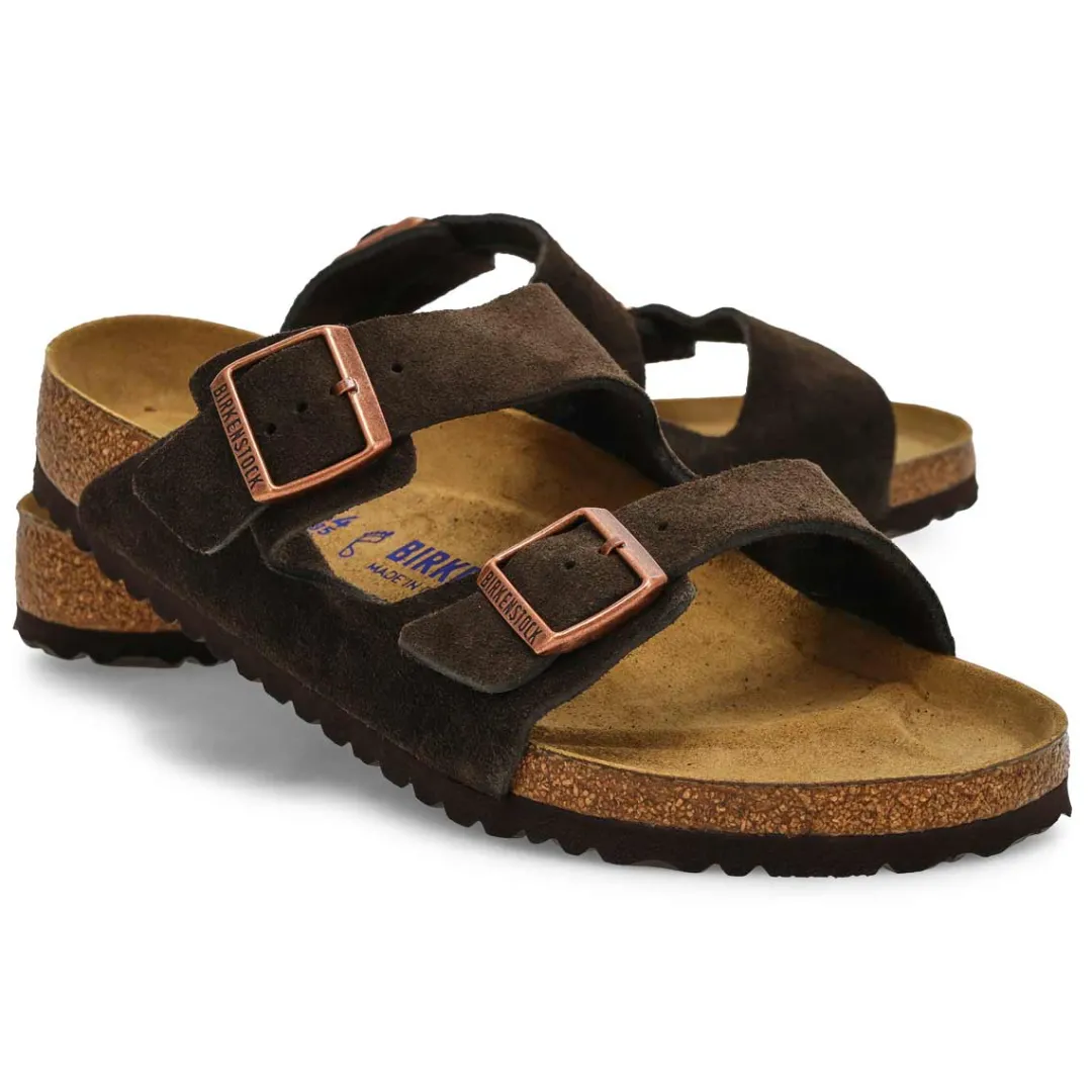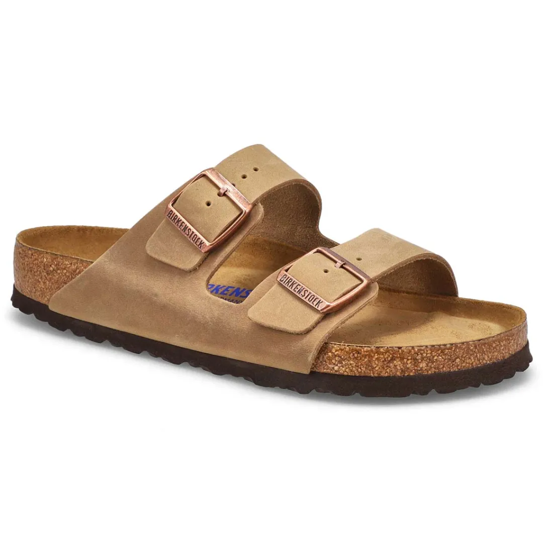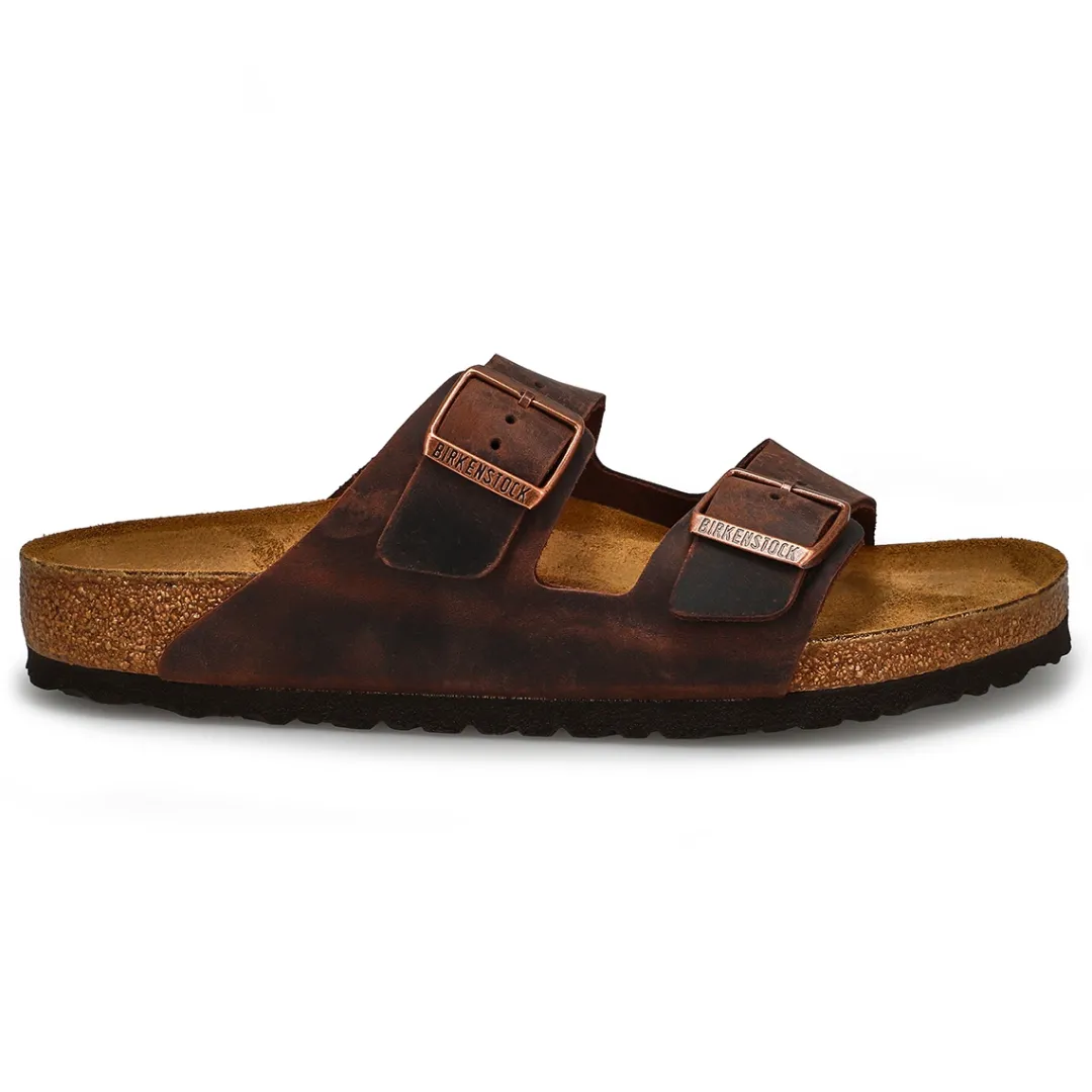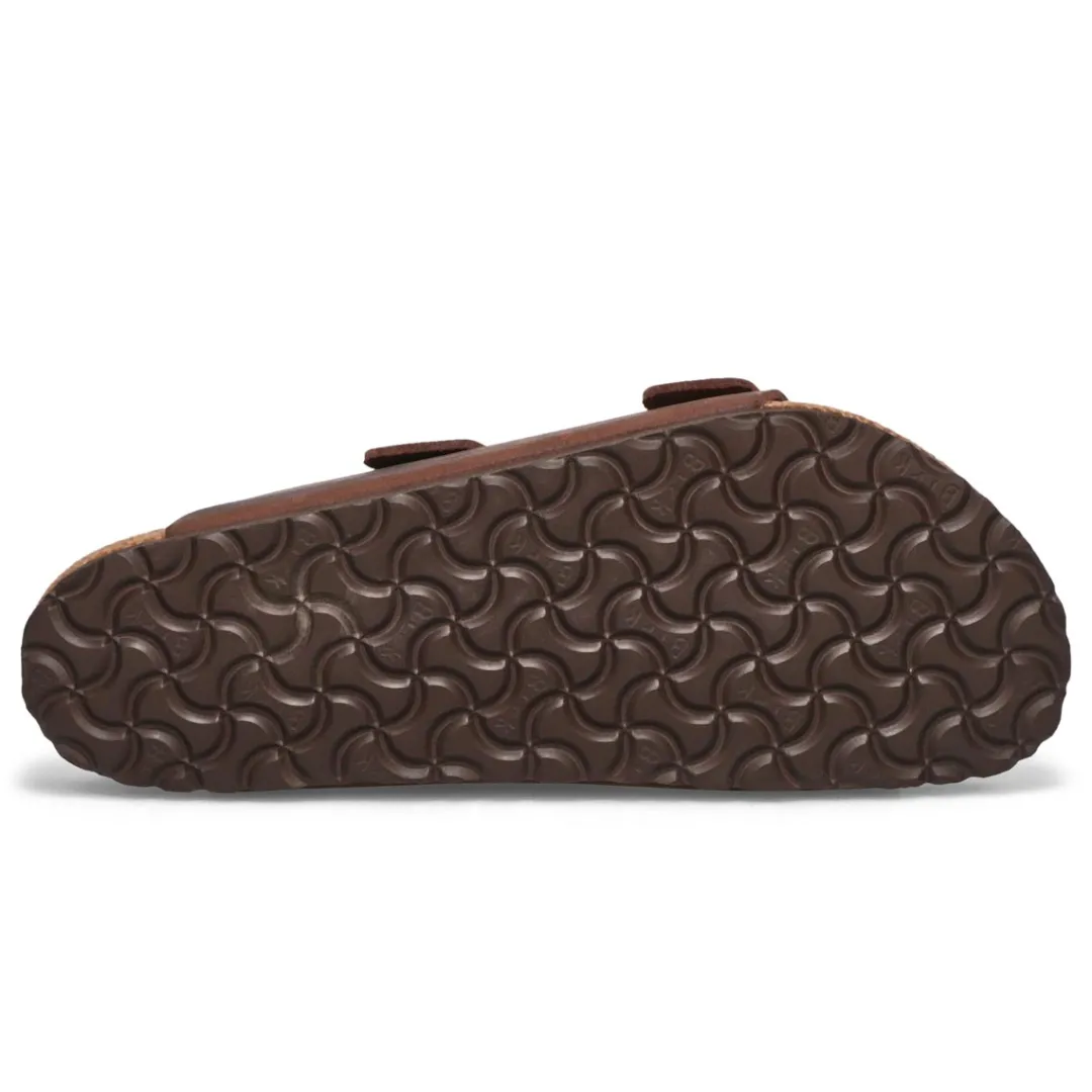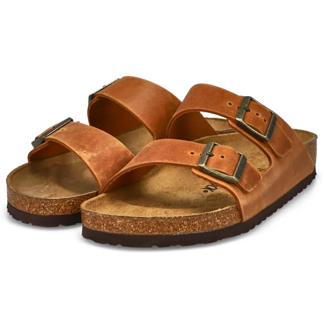 The Arizona Oiled Leather habana 2 strap upper from Birkenstock with an footbed that provides excellent arch support. Durable EVA outsole, cork footbed molds to each individual foot to provide a custom fit. This Birkenstock sandal is a genuine classic, emphasizing the handcrafted and natural look of stylish sandals. A comfort legend and a fashion staple.