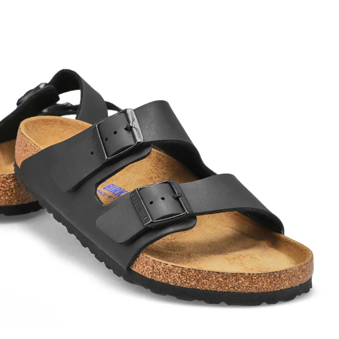 The Arizona Birko-flor 2 strap upper from Birkenstock with a contoured cork footbed conforms to the shape of your foot and features pronounced arch support. Durable EVA outsole, cork footbed molds to each individual foot to provide a custom fit. This Birkenstock sandal is a genuine classic, emphasizing the handcrafted and natural look of stylish sandals. A comfort legend and a fashion staple.
