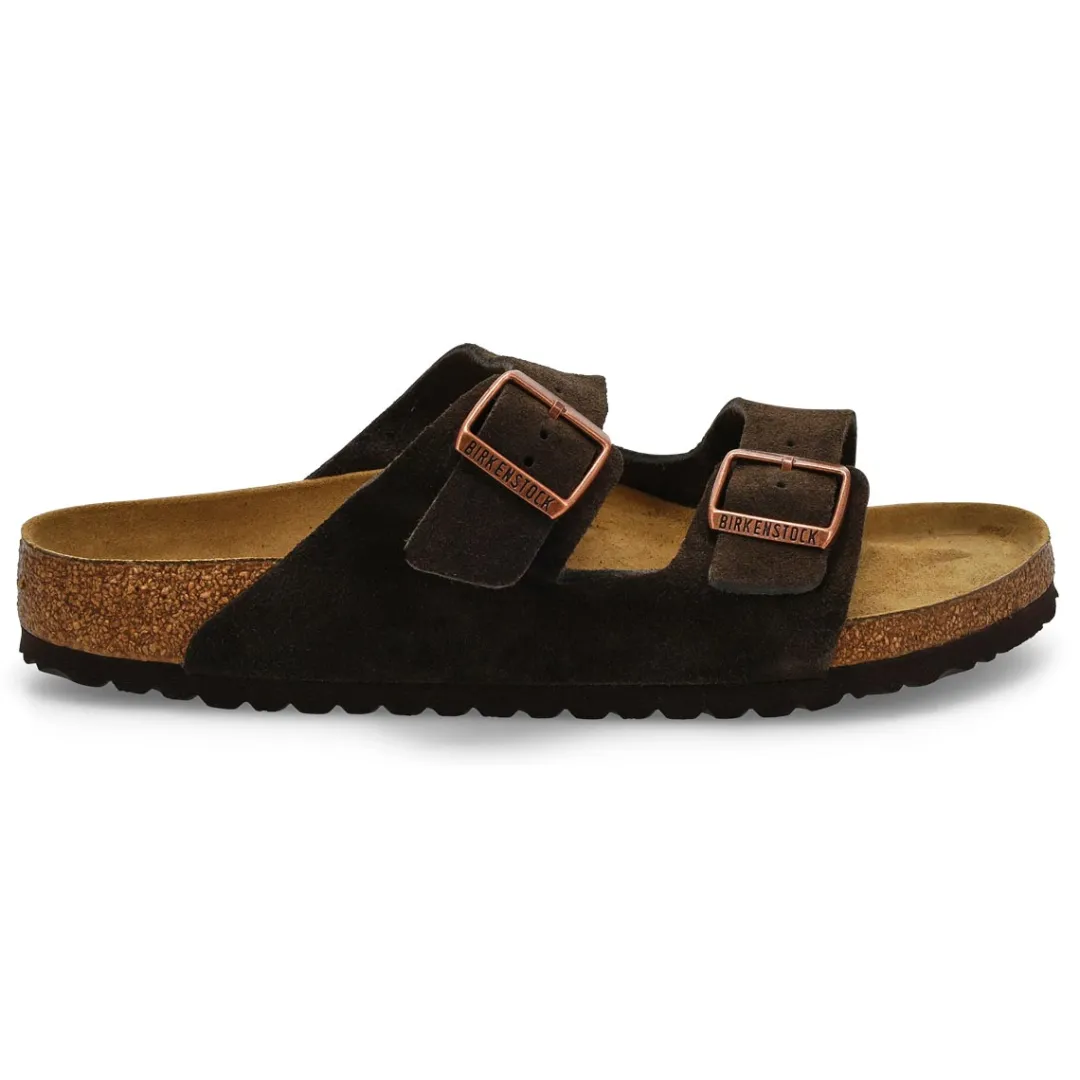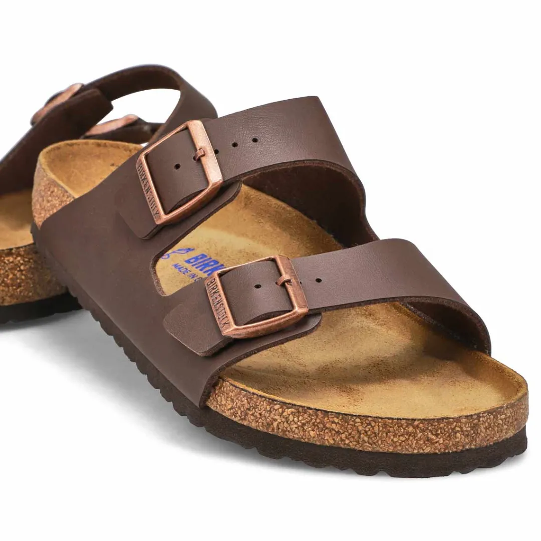 The Arizona Oiled Leather 2 strap upper from Birkenstock with a contoured cork footbed conforms to the shape of your foot and features pronounced arch support. Durable EVA outsole, cork footbed molds to each individual foot to provide a custom fit. This Birkenstock sandal is a genuine classic, emphasizing the handcrafted and natural look of stylish sandals. A comfort legend and a fashion staple.