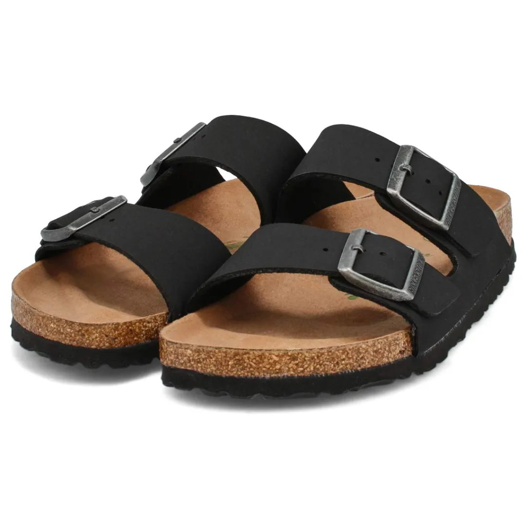 The Arizona Vegan 2 strap upper from Birkenstock with a contoured cork footbed conforms to the shape of your foot and features pronounced arch support. Durable EVA outsole, cork footbed molds to each individual foot to provide a custom fit. This Birkenstock sandal is a genuine classic, emphasizing the handcrafted and natural look of stylish sandals. A comfort legend and a fashion staple.