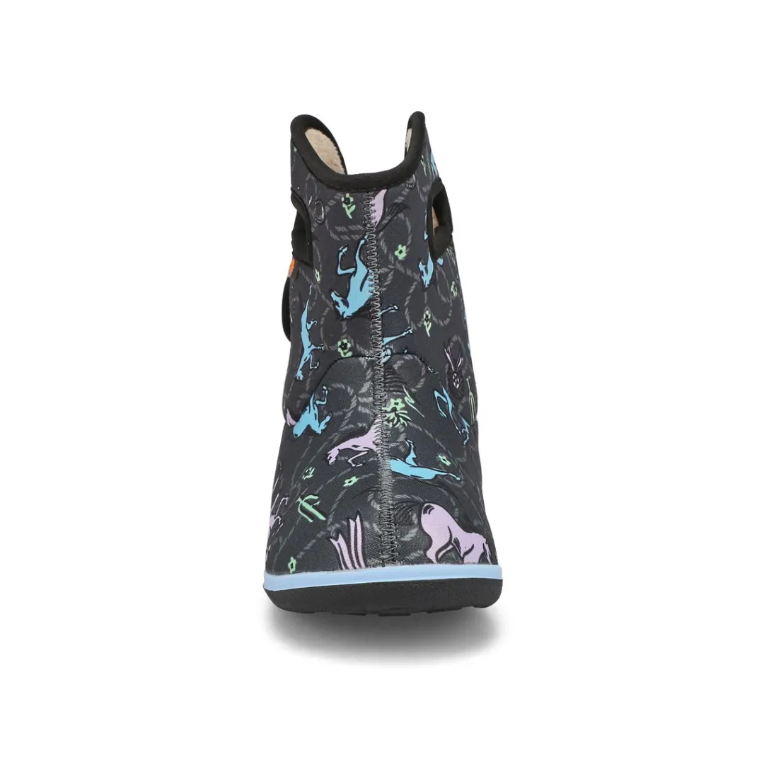 Introduce little ones to the great outdoors. These Baby Bogs II Horses waterproof dark grey/ multi from Bogs will keep your little one warm and dry in damp, chilly weather with a waterproof build and Neo-Tech insulation. Fuzzy plush lining adds an extra snuggly feel, and a hook-and-loop strap makes them simple to get on and off.
