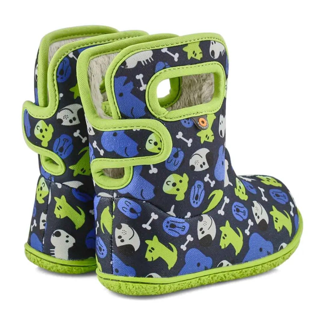 Introduce little ones to the great outdoors. These infants’ blue Baby Bogs Puppies by Bogs waterproof boots will keep them warm and dry in damp, chilly weather with a waterproof build and Neo-Tech insulation. Fuzzy plush lining adds an extra snuggly feel, and a hook-and-loop strap makes them simple to get on and off.