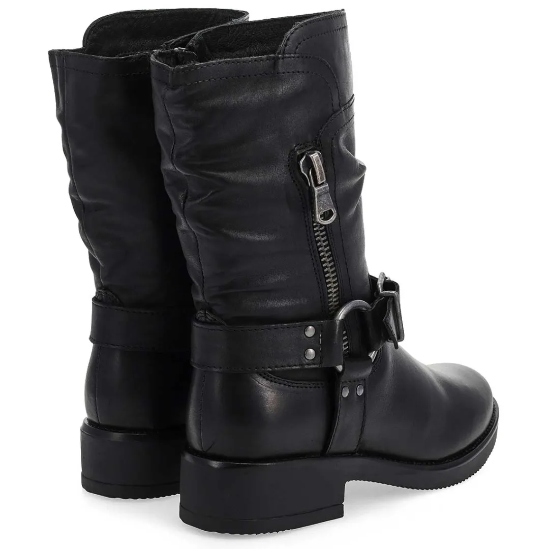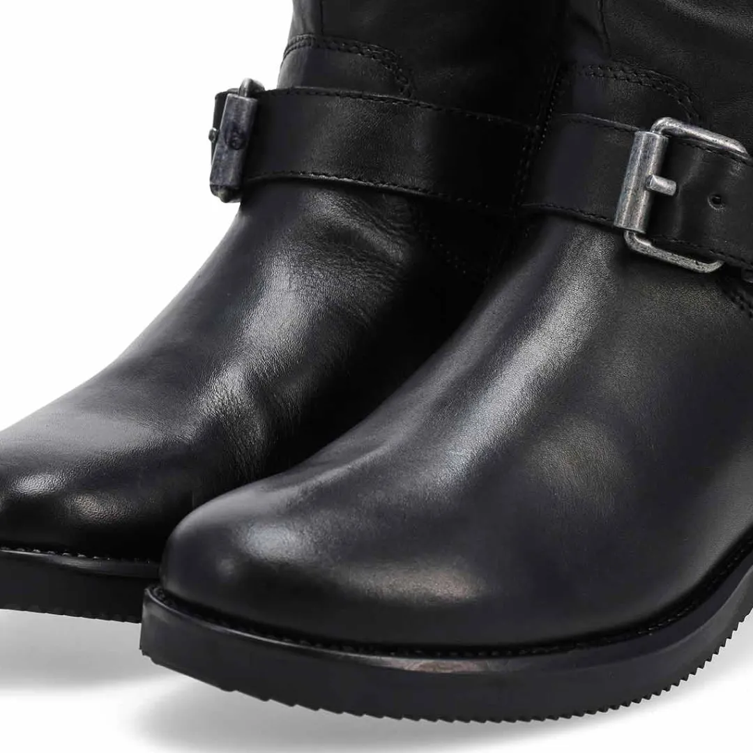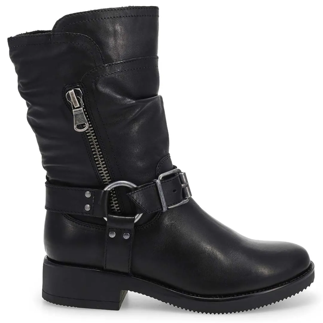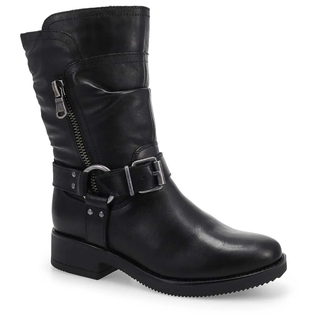 The Basim Leather black ankle boot from Maddison by SoftMoc is a stylish silhouette to your wardrobe. Featuring a genuine leather upper with stitching detailing. Side zipper for an easier on/off. with buckle detailing. DurableTPR Outsole. You will want to make the Basim leather zip boot part of your must-have list for this season!