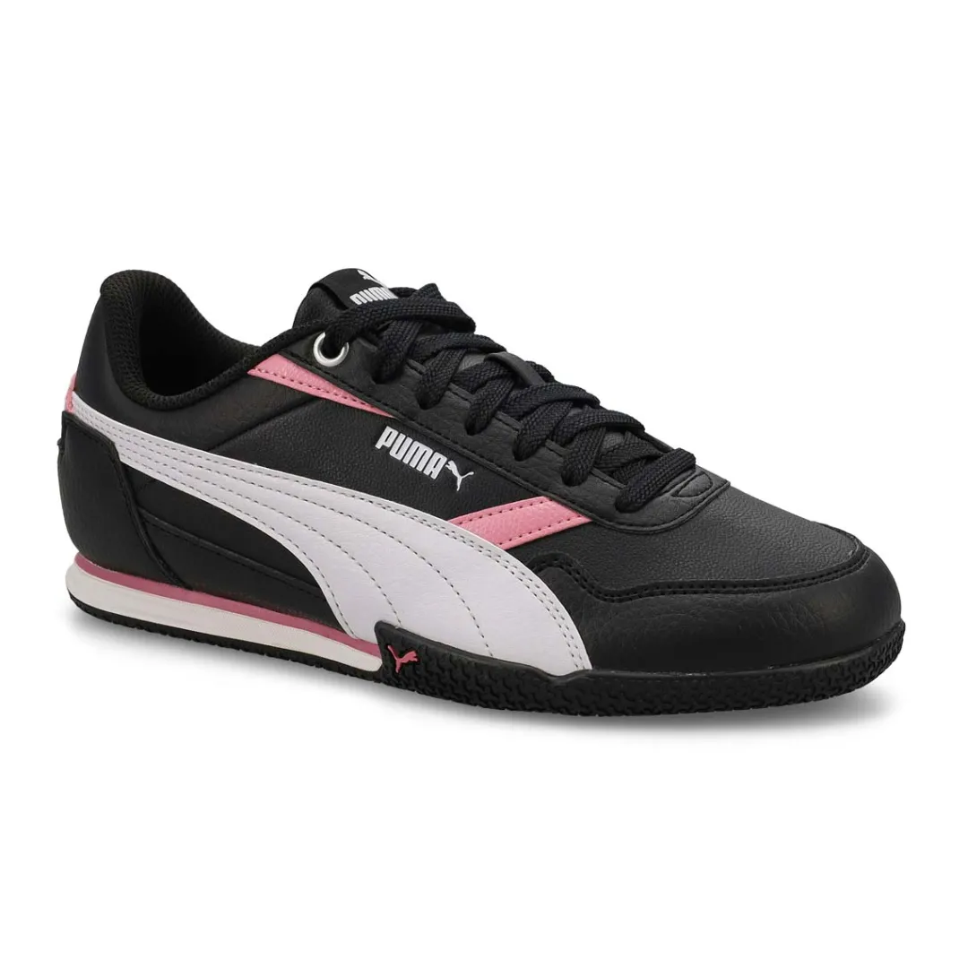 The Bella Donna low profile sneaker from Puma features a nylon upper with suede overlays and a sleek synthetic leather formstrip. These kicks bring sporty vibes with a slim, versatile fit. The SOFTFOAM+ sockliner and die-cut EVA tooling deliver all-day ease, making every step effortless. Own your look with PUMA’s bold energy.