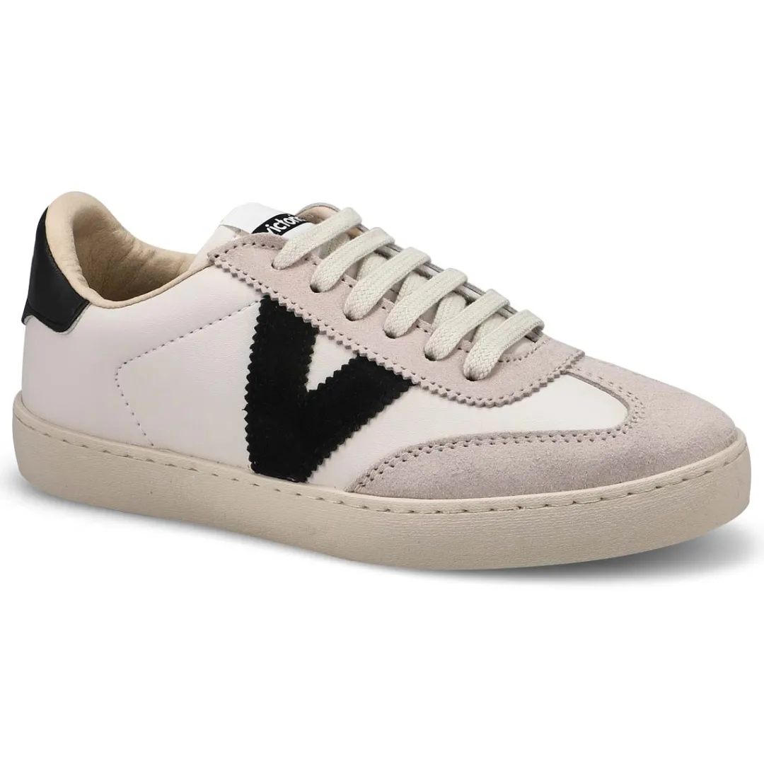Made in Spain in high quality soft leather. The Berlin Cycle Toe sneaker from Victoria carries the distinction of a silver medal in the LWG (Leather Working Group) certification, which guarantees a responsible tanning process, with an efficient use of water, energy and sustainable waste management. Coloured details on the V on the side and on the back piece, and split leather toe. Their lightly toasted sole is made with vegetable oils rather than mineral oils, thus reducing the environmental impact. They also feature a more ergonomic insole, made from recycled materials, providing superior comfort with every step.