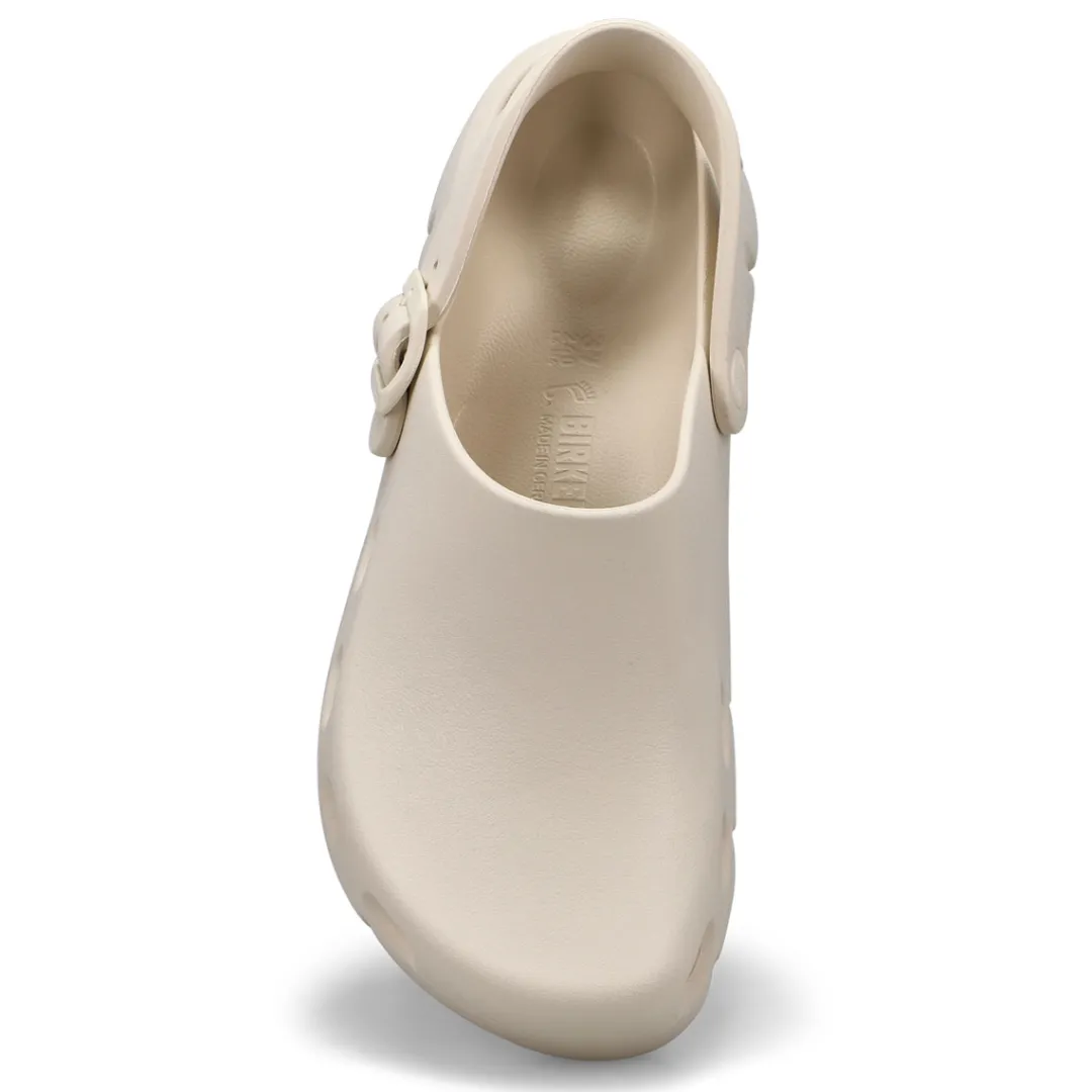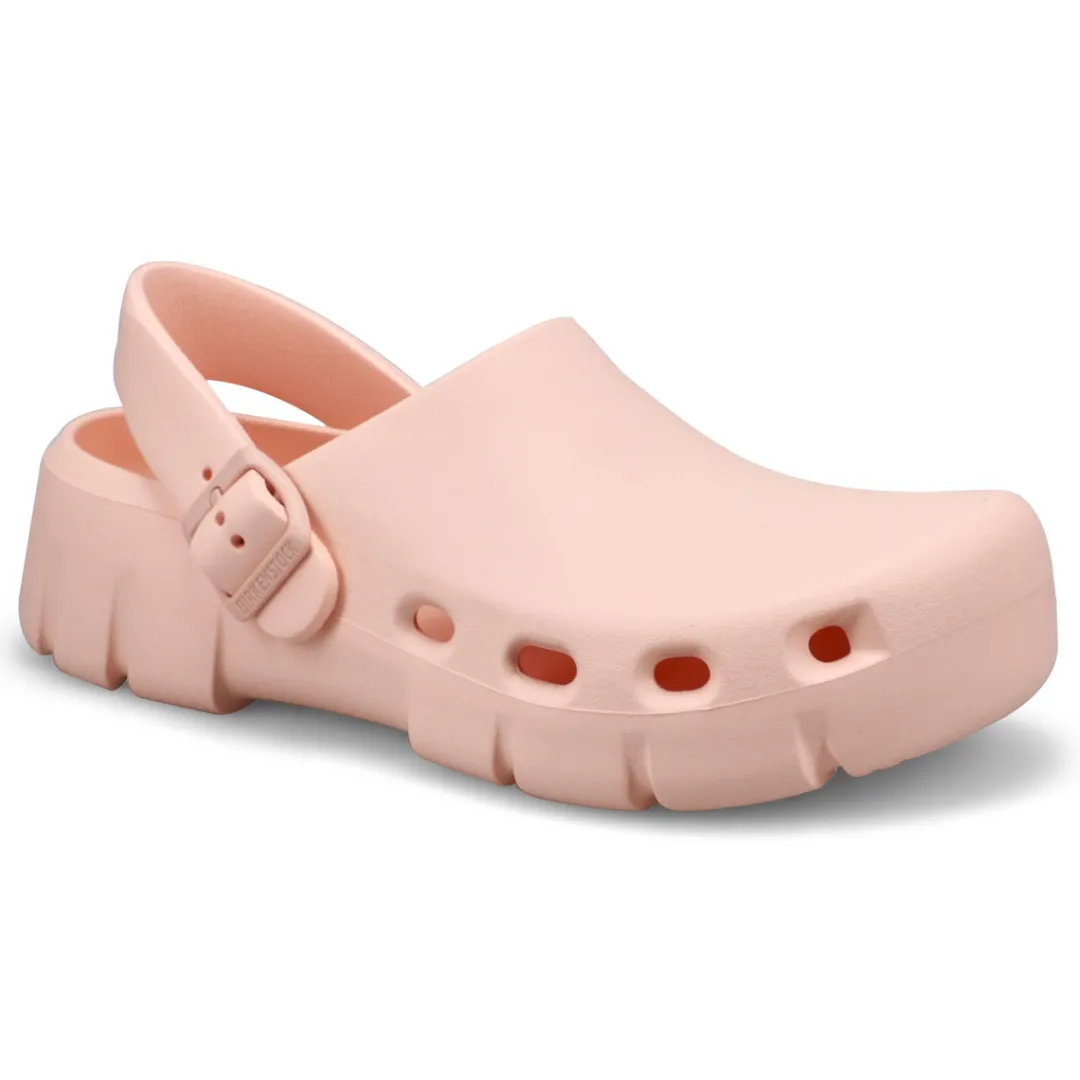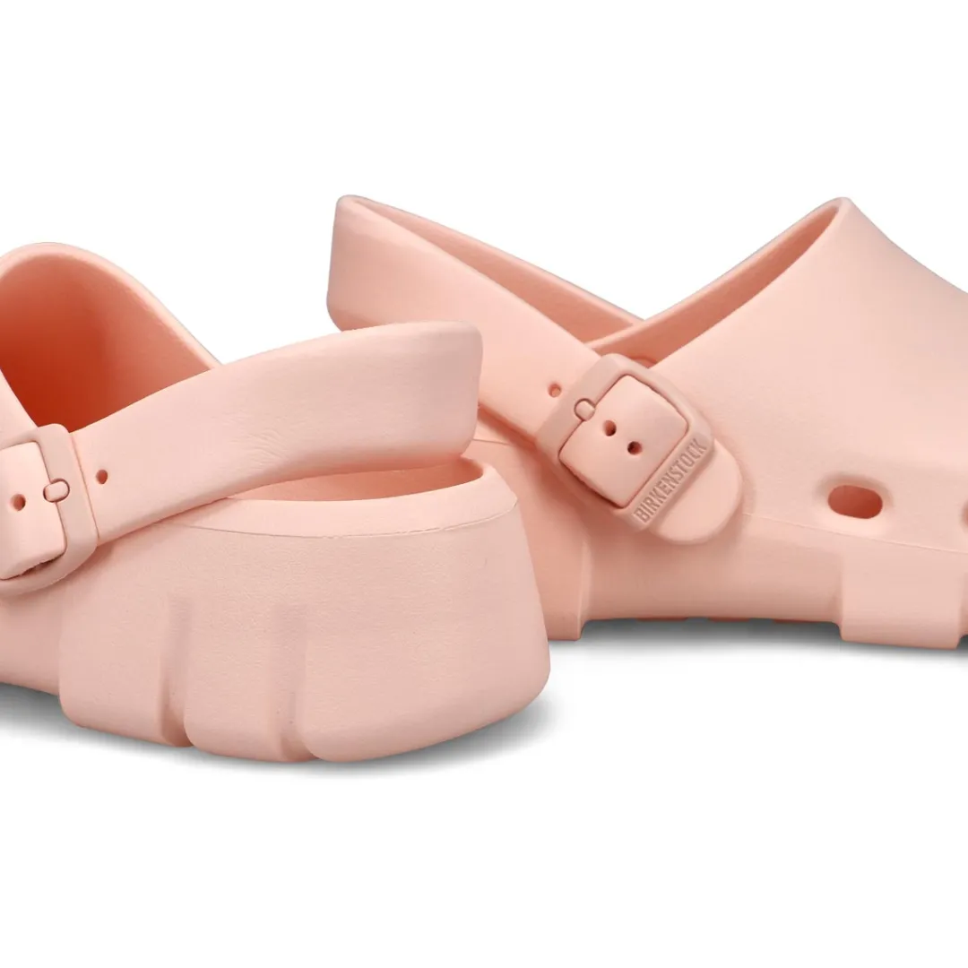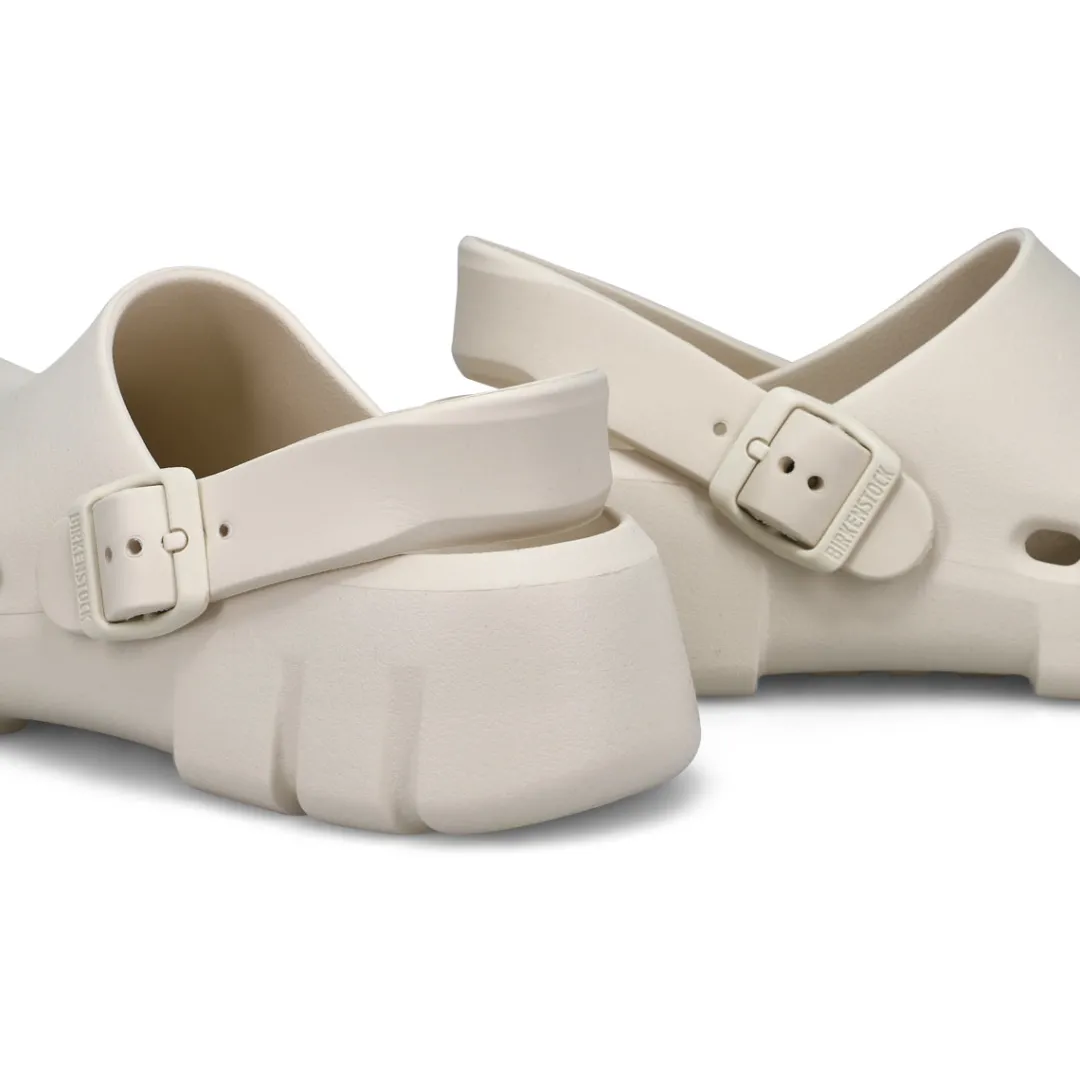 Introducing Birkenstocks first post-sport recovery clog, the all-new Birki Flow. Designed around the contours of Birkenstocks iconic footbed, the Birki Flow builds off their best-selling EVA clogs with an ultra-breathable, water-friendly style. Complete with classic Birkenstock design cues, from the adjustable backstrap to molded buckle. Washable, flexible & ultra-lightweight. Made in Germany.