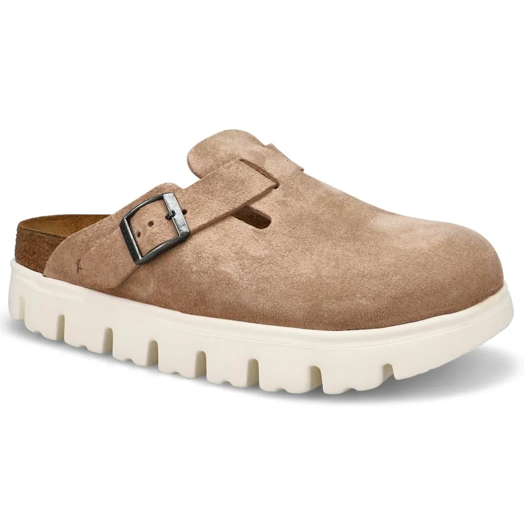 A chunky platform sole takes the Boston clog’s iconic design from Birkenstock to new heights—and your style along with it. Featuring a velvety suede that feels as classic as the original, with fresh perspective from the statement platform below. Designed around a contoured footbed, this style feels better and better with wear. Made in Germany. Narrow WIdth.