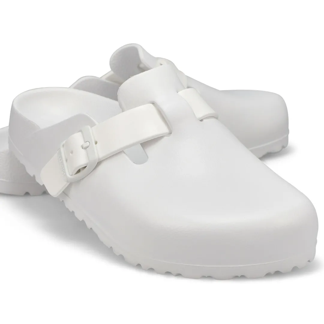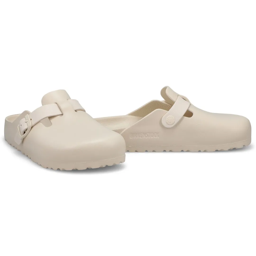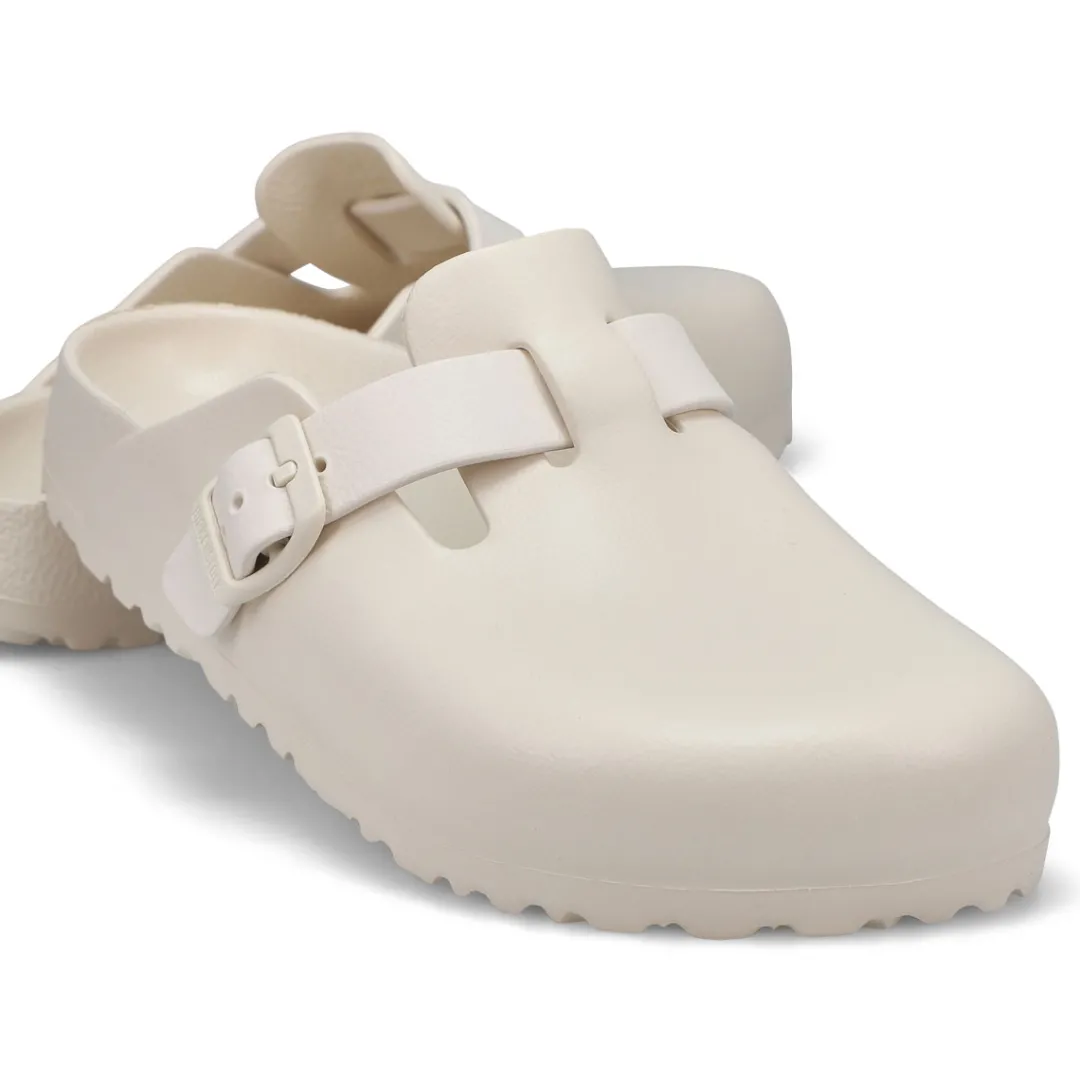The Boston EVA is made from water-friendly material, giving you a flexible design built on the contoured footbed you love most. The perfect pair for pre-workout, post-practice and all the rest days in between. The days will be filled with walking comfort, without compromising good looks and style. This Birkenstock sandal is a genuine classic, emphasizing the handcrafted and natural look of stylish sandals. A comfort legend and a fashion staple. Narrow Width.