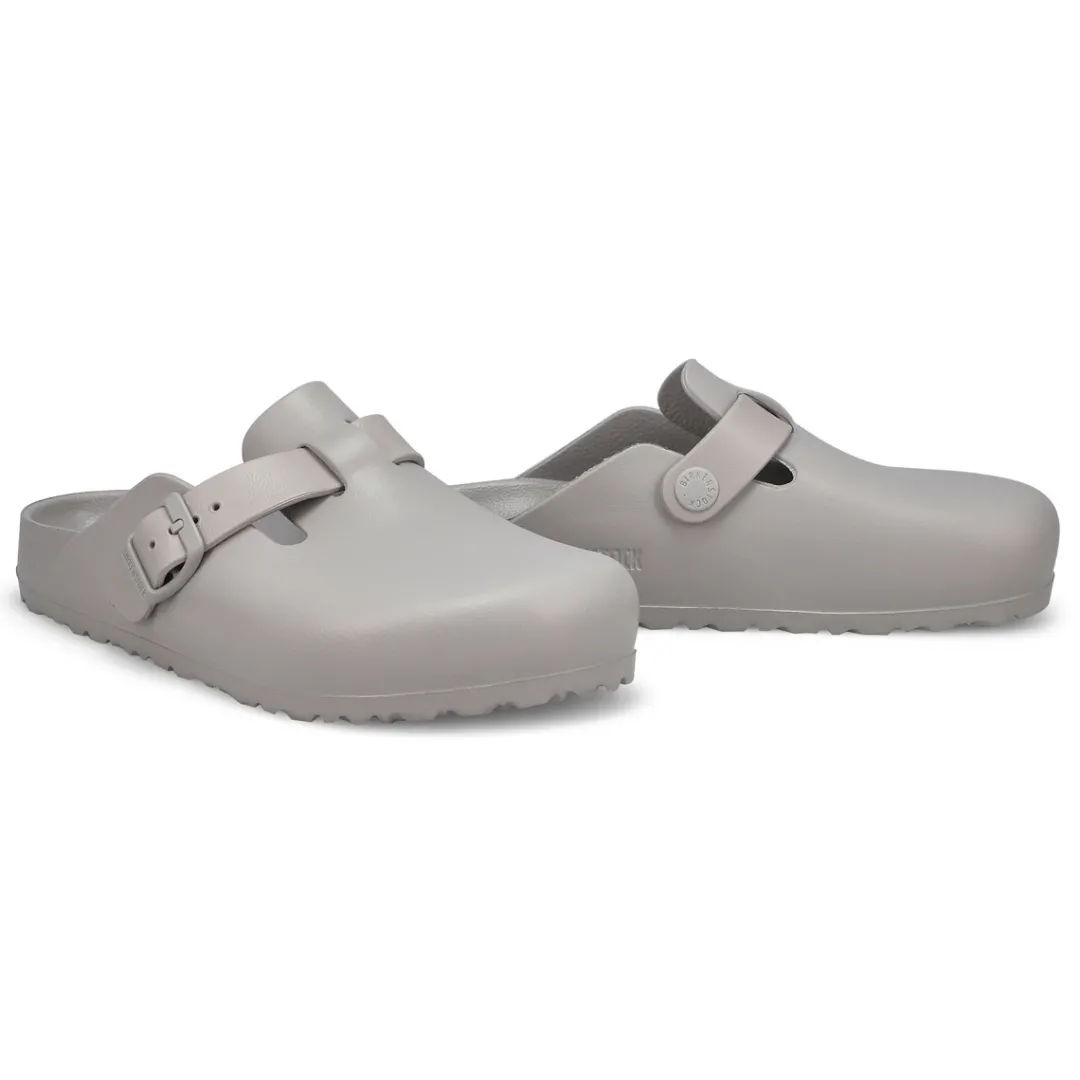 The Boston EVA is made from water-friendly material, giving you a flexible design built on the contoured footbed you love most. The perfect pair for pre-workout, post-practice and all the rest days in between. The days will be filled with walking comfort, without compromising good looks and style. This Birkenstock clog is a genuine classic, emphasizing the handcrafted and natural look of stylish sandals. A comfort legend and a fashion staple. Narrow Width.