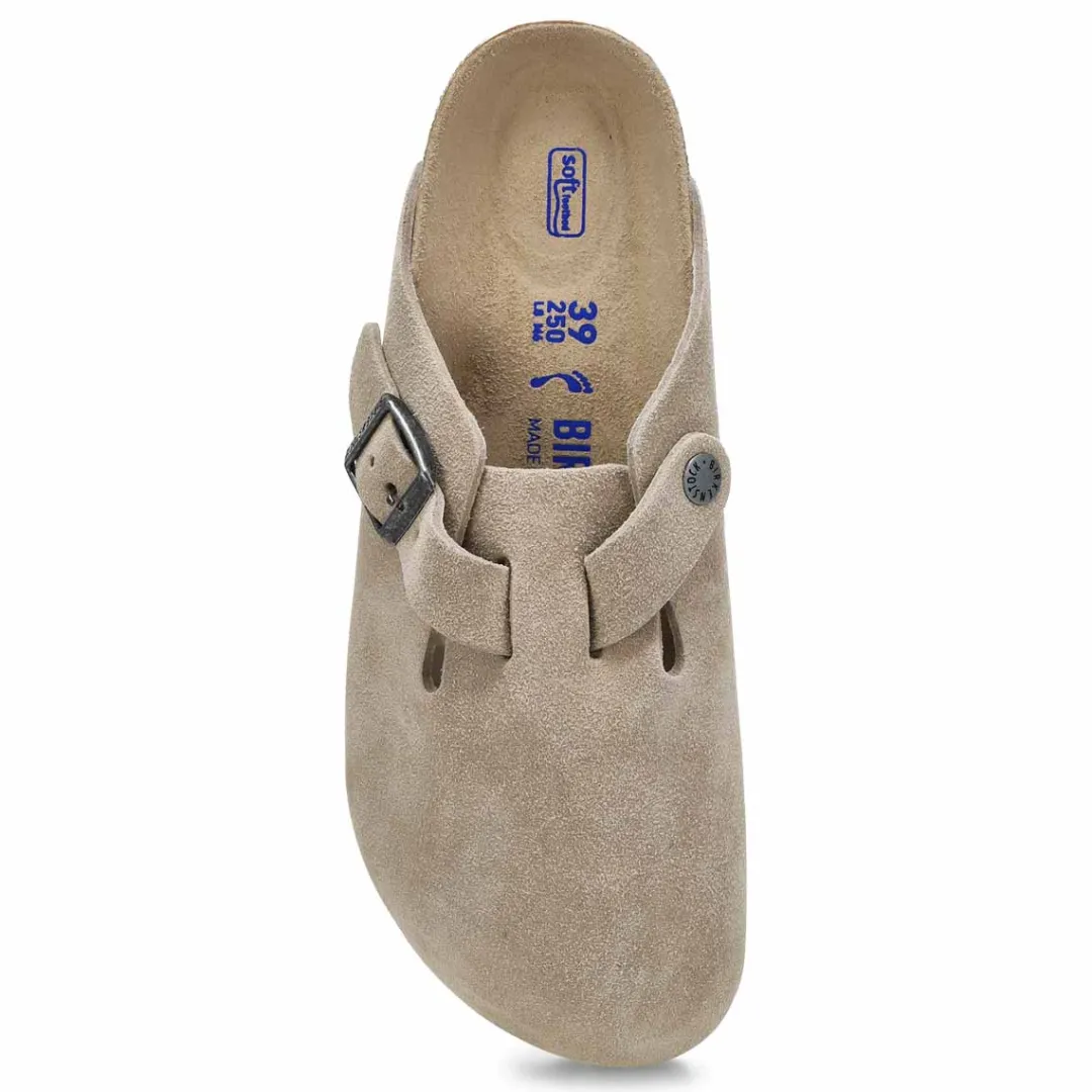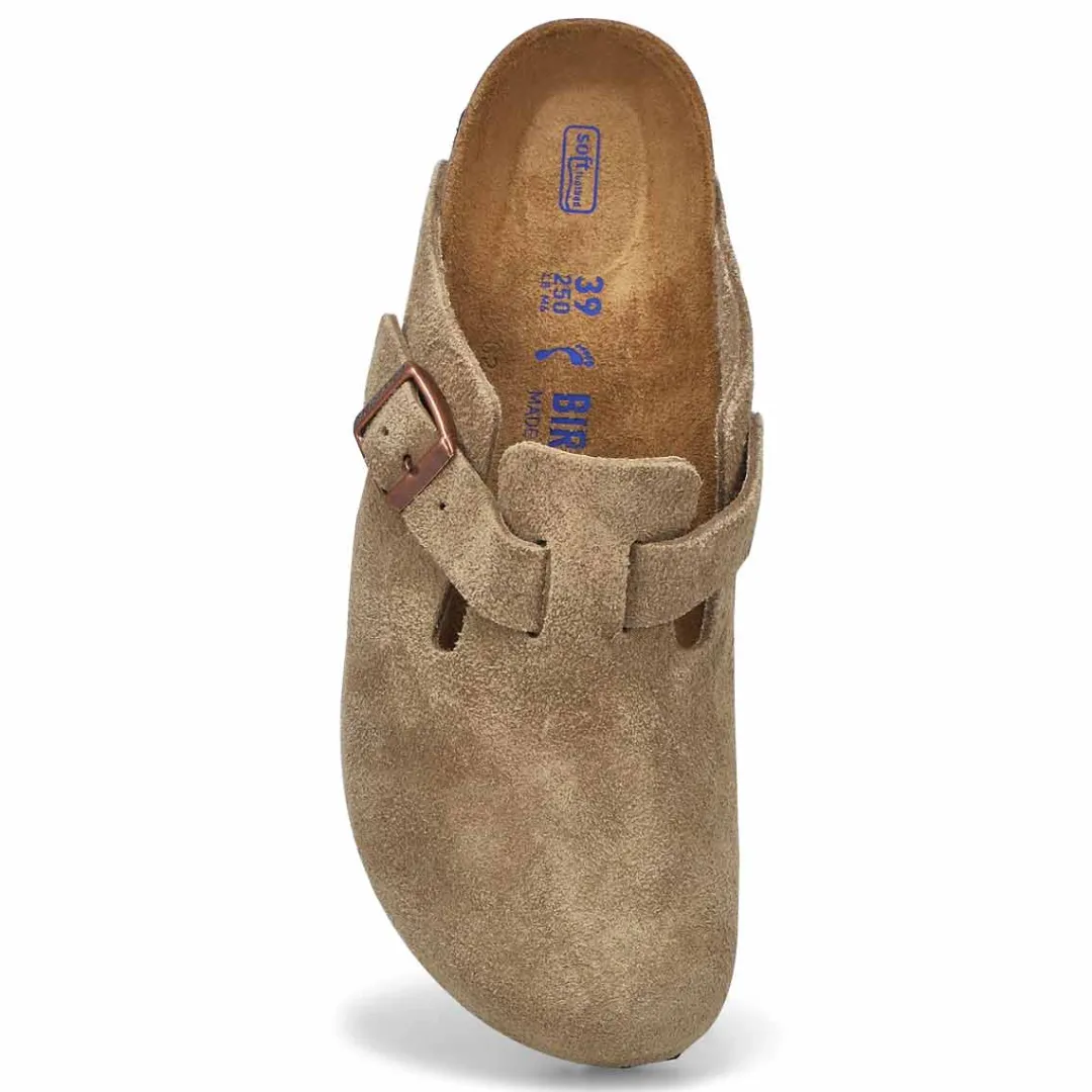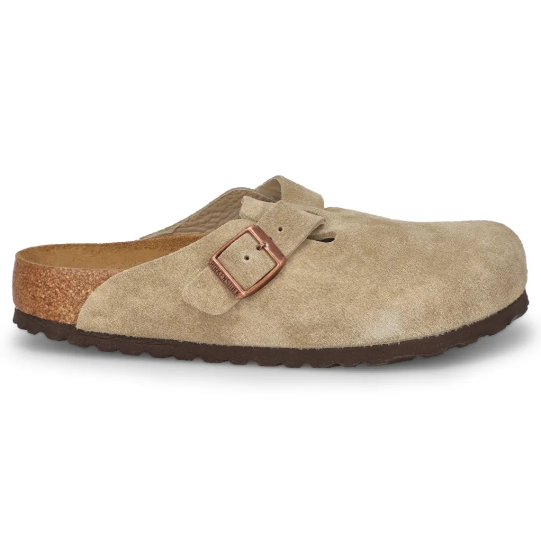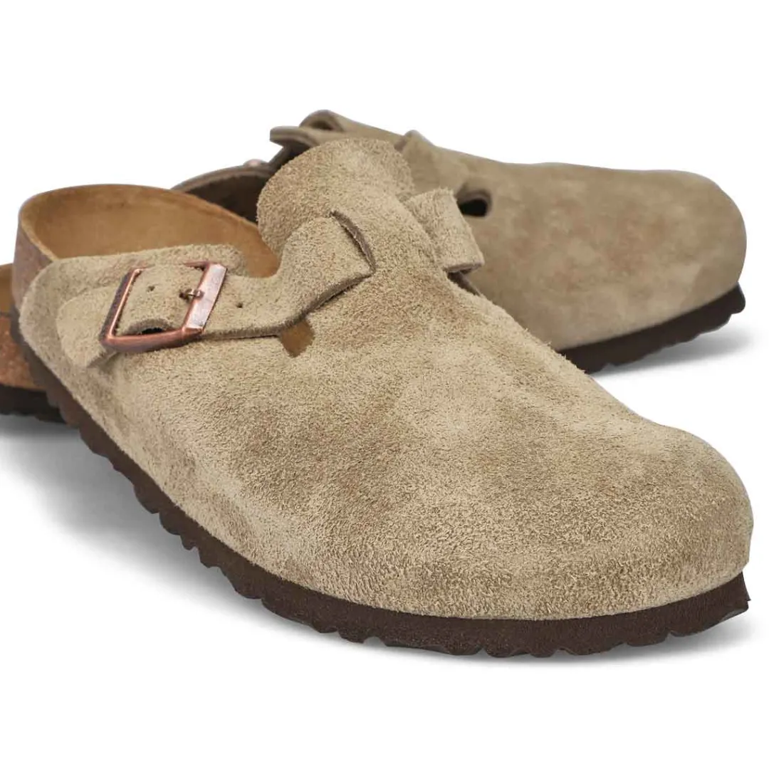 The Boston suede casual clog from Birkenstock with a soft cushioned footbed provides excellent arch support. Durable EVA outsole, cork footbed molds to each individual foot to provide a custom fit. This Birkenstock sandal is a genuine classic, emphasizing the handcrafted and natural look of stylish sandals. A comfort legend and a fashion staple. Narrow Width.
