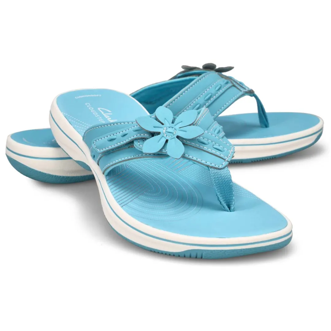 Topped with a pretty flower detail, the Breeze Opal sky blue thong flip-fllop sandal from Clarks is part of their Cloudsteppers collection, so you know that total underfoot comfort is a sure thing. It’s crafted with soft synthetic uppers for a skin-gentle feel, while grippy soles make for confident support and easy-breezy steps.