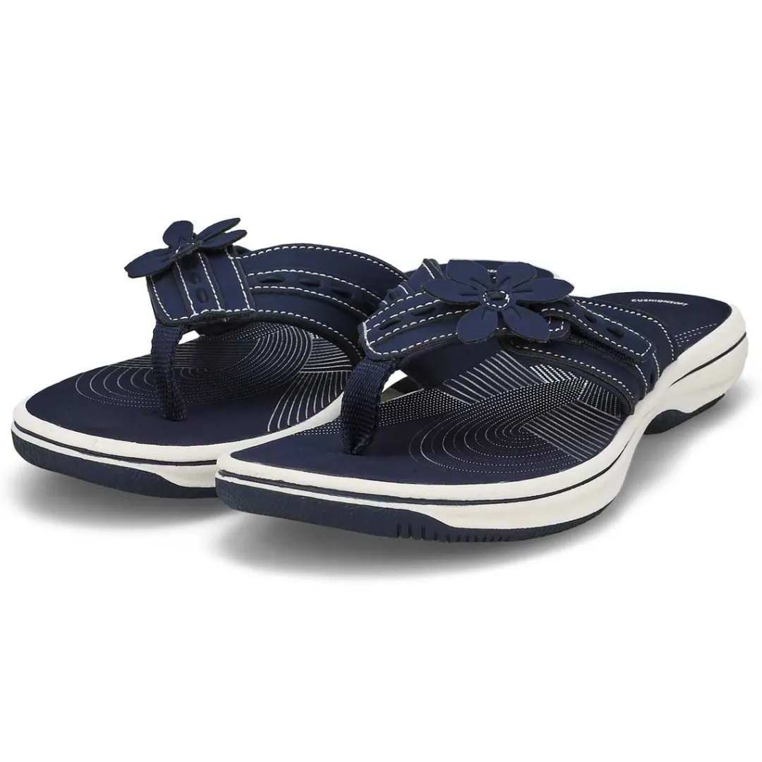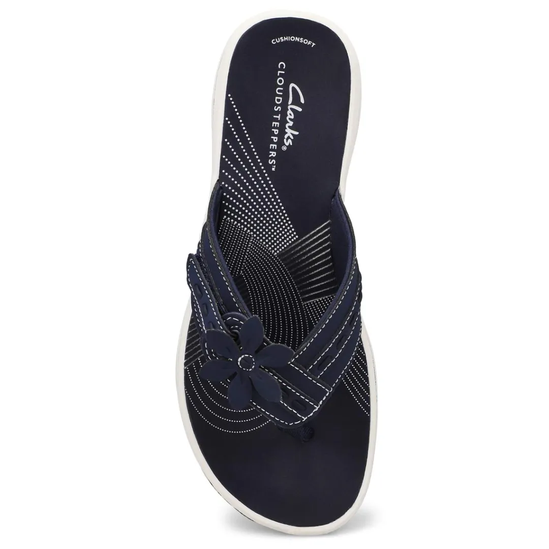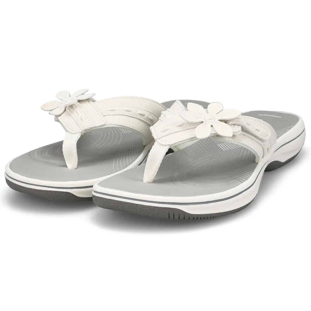 Topped with a pretty flower detail, the Breeze Opal white thong flip-fllop sandal from Clarks is part of their Cloudsteppers collection, so you know that total underfoot comfort is a sure thing. It’s crafted with soft synthetic uppers for a skin-gentle feel, while grippy soles make for confident support and easy-breezy steps.