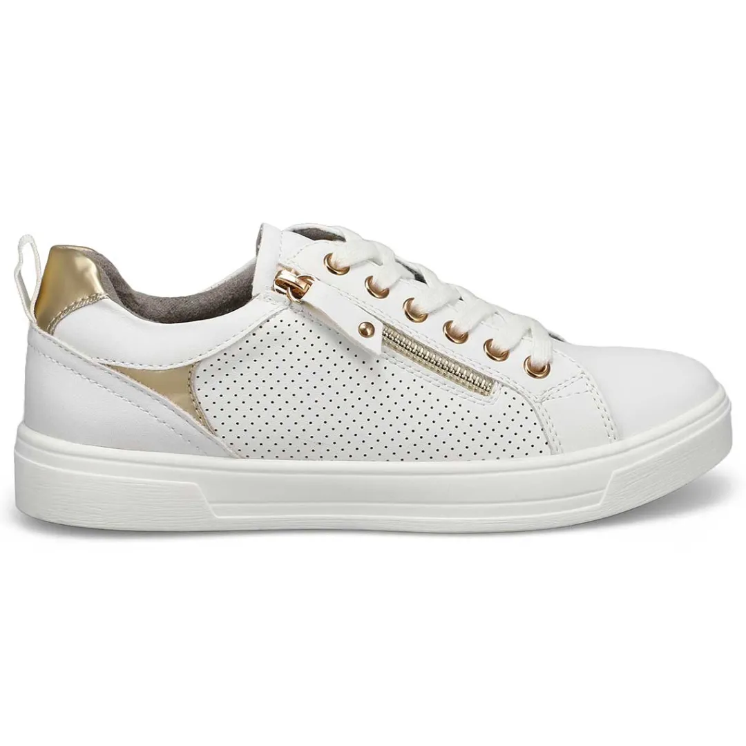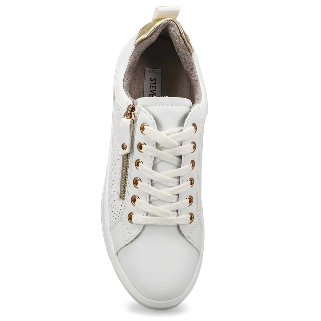 Freshen your fall footwear rotation with this classic kick. The Brooke white lace up sneaker from Steve Madden features clean lines with a cushioned collar for added comfort. Featuring a synthetic upper with a textile lining that surrounds the foot in comfort. Lace up styling for a secure fit. You will want to make the Brooke lace up sneaker part of his must-have list for this season!