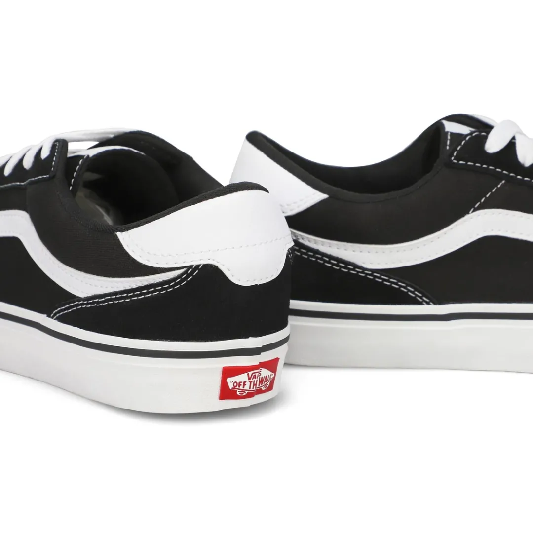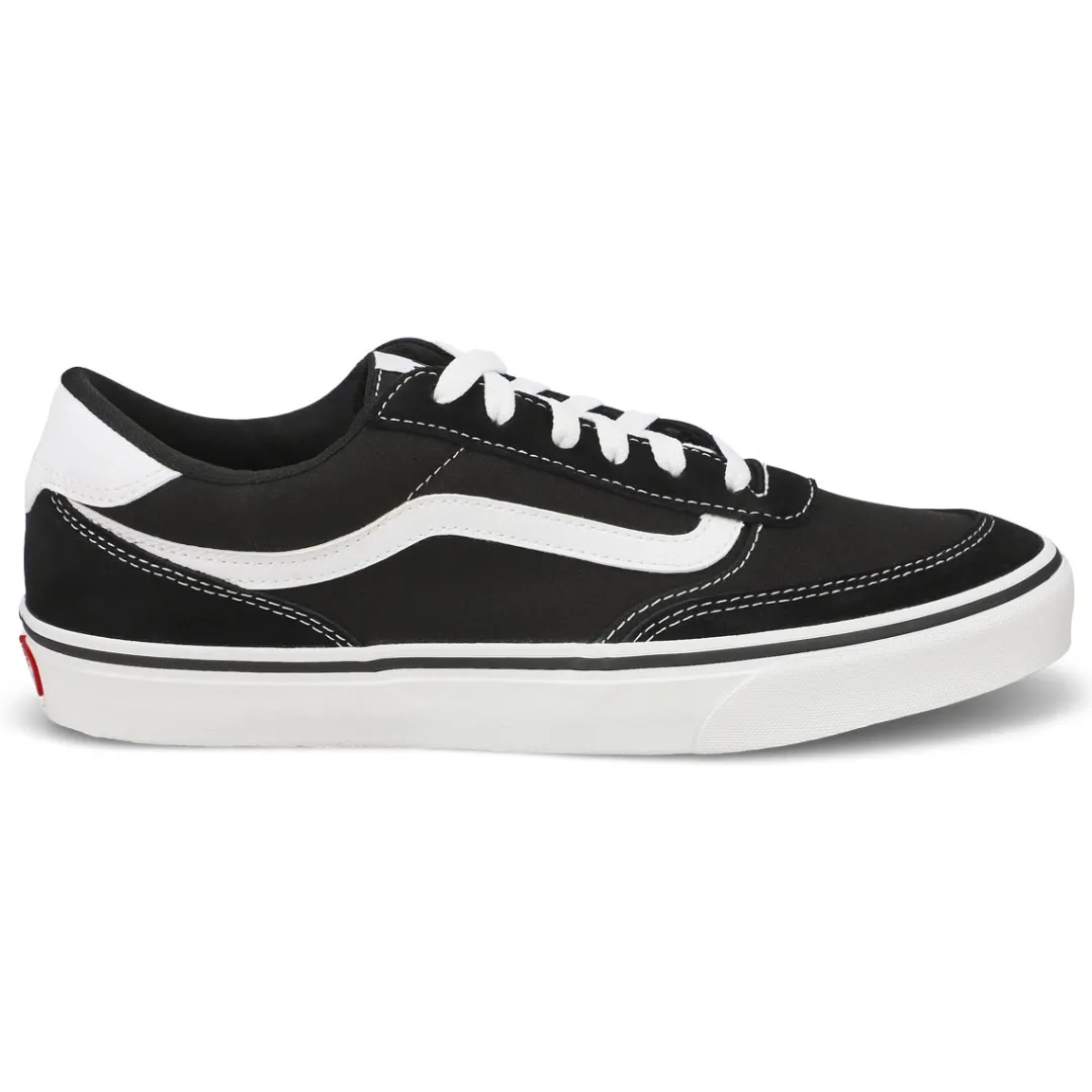 The Vans Brooklyn LS black /white lace up sneaker from Vans is a contemporary low-top sneaker that blends classic skate-inspired design with modern comfort features that offer a versatile look suitable for everyday wear. Combination of canvas and suede for durability and style. Lace-up design for a secure fit. Padded collar and cushioned footbed provide all-day comfort.