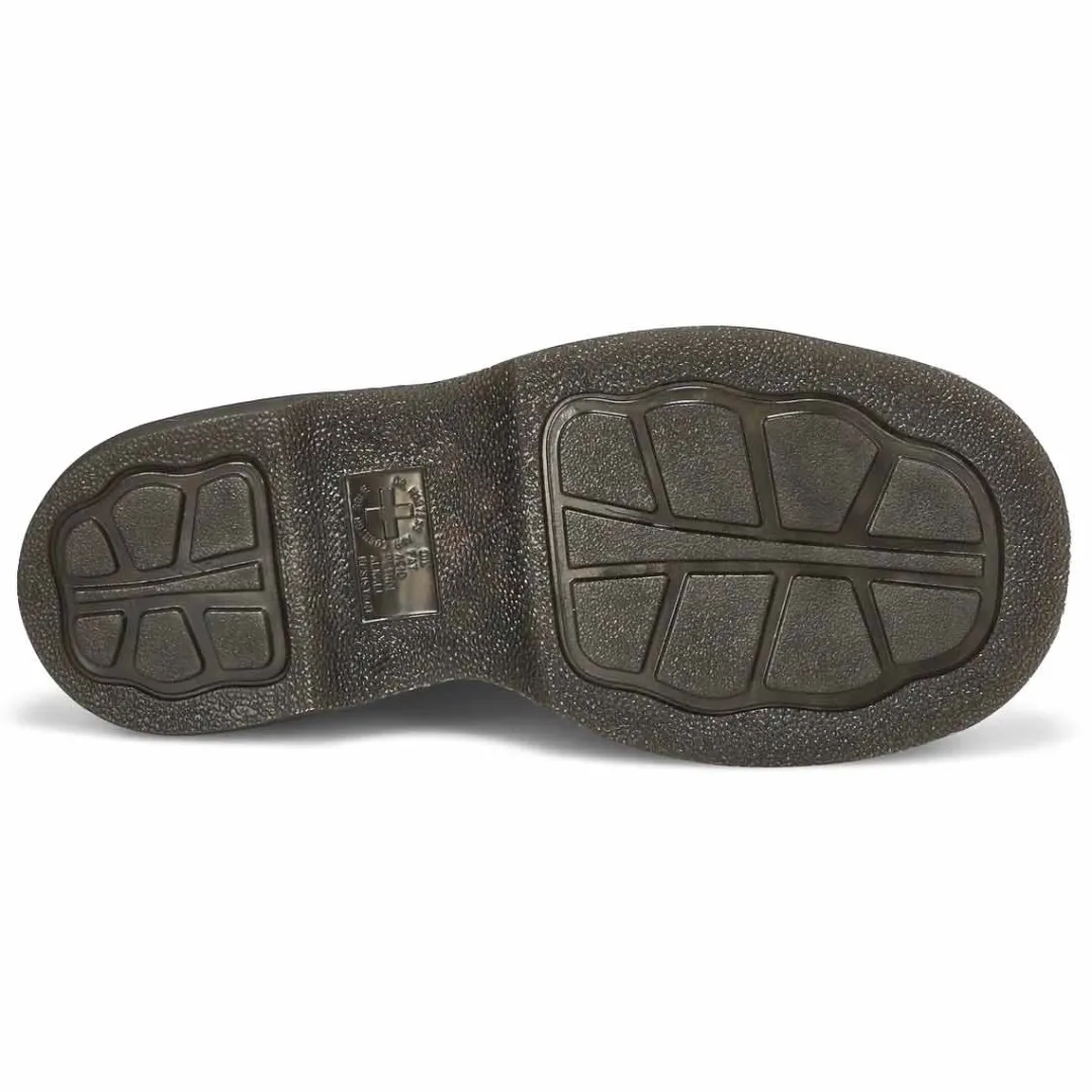 Feel the Buzz. Inspired by Dr. Martens’ 90s silhouettes, the new Buzz 5-eye shoe grabs attention from top to bottom. It stands on their chunky barrel-edge Buzz sole — marked with DM’s grooving, yellow welt stitching, and a leaf pattern on the undersole. The soft Grizzly leather upper has a comfortable padded collar, contrast stitch detailing, and an inflated, rubberised badge that echoes the contours of the sole.