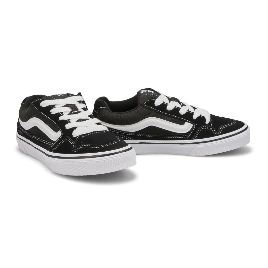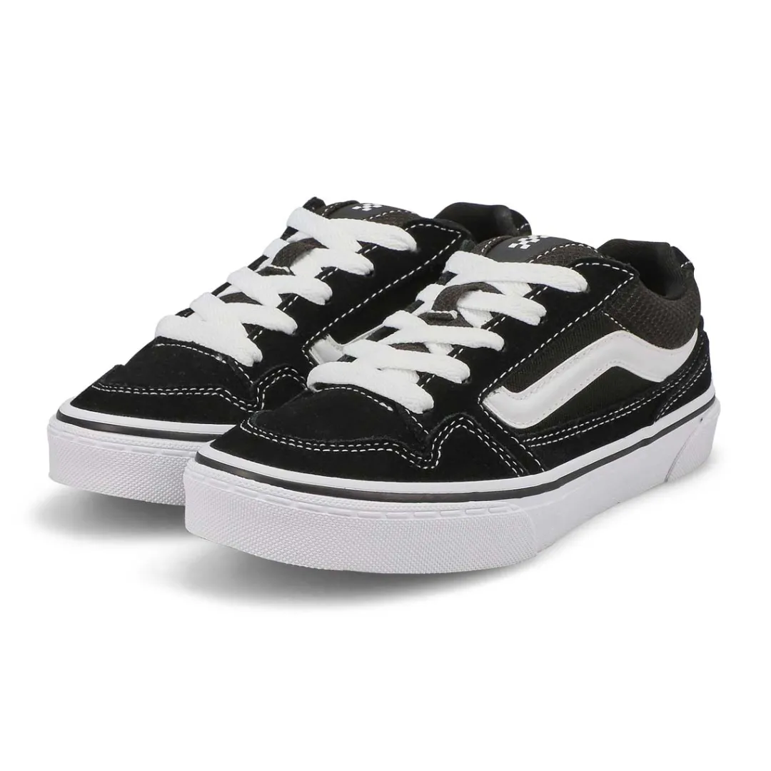 They will want to hit up the skatepark in the Caldrone black/ white sneaker from Vans. This trendy low-top sneaker features a canvas and suede upper with lace-up closure for a secure fit and a supportive padded collar and tongue. A cushioned insole keeps your feet feeling great, while the Waffle rubber outsole provides fantastic traction.