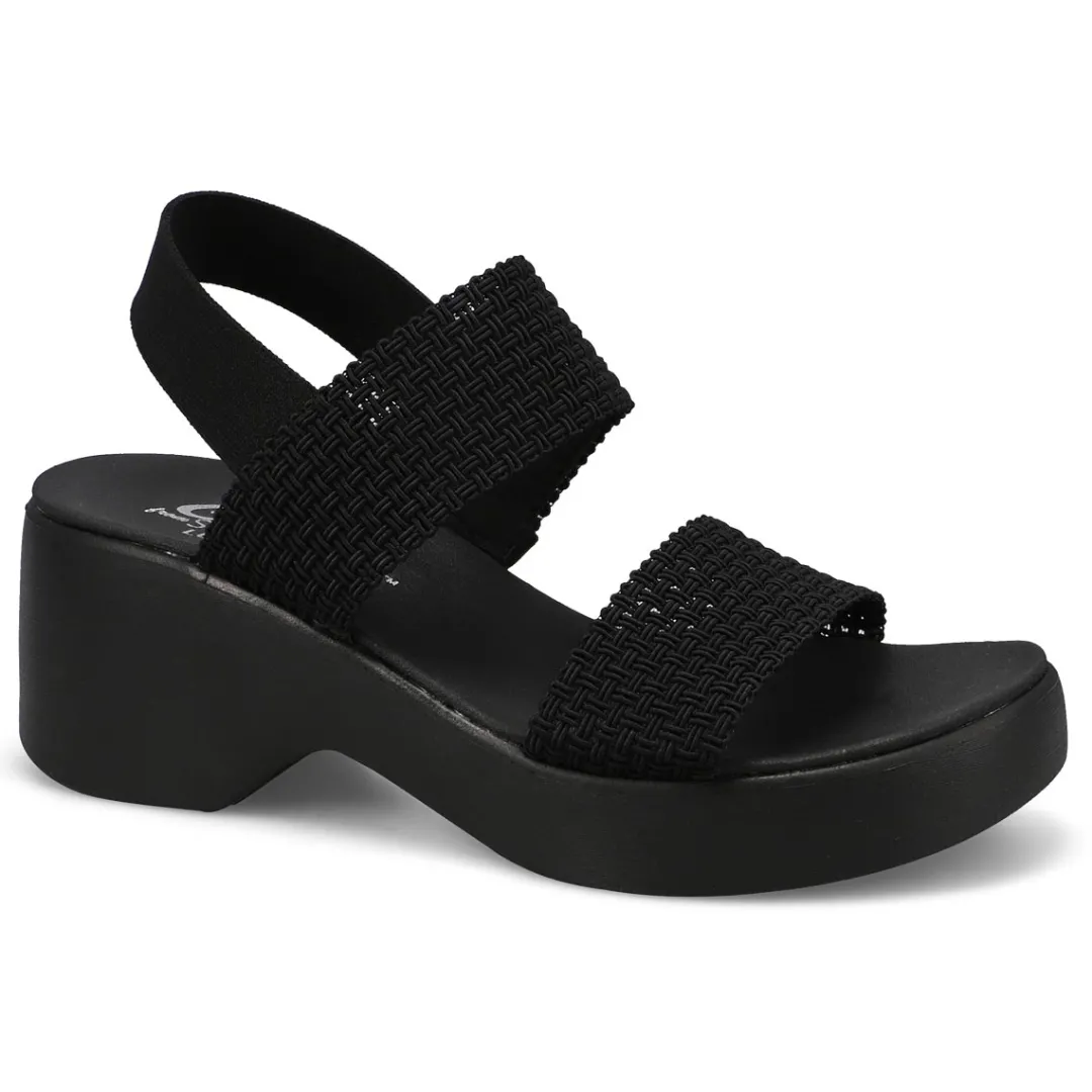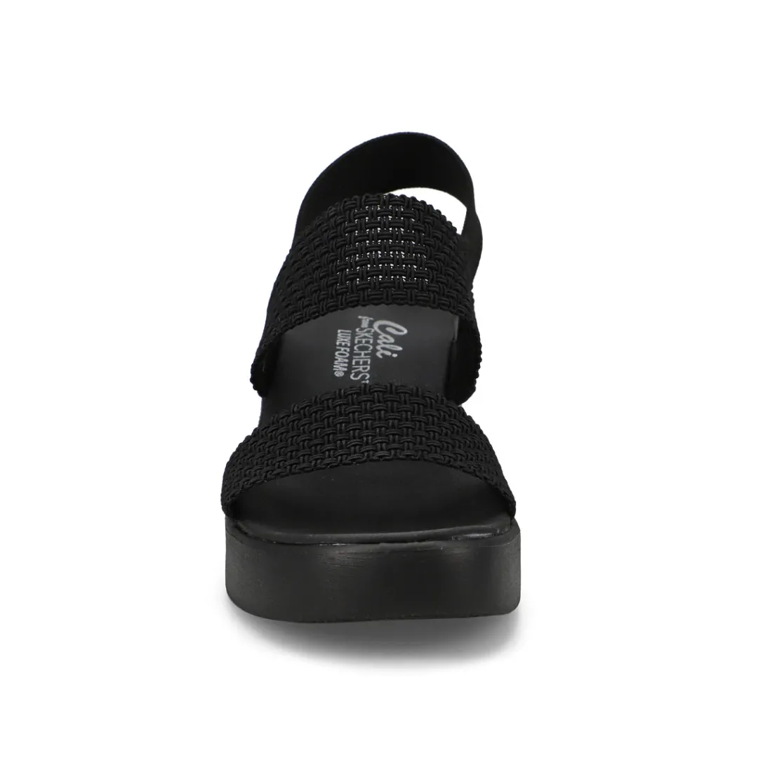 Heighten your look stylish comfort in the Cali Day black/ black Casual Sandal from Skechers. This lightweight sandal features a stretchy knitted double band strap upper with a sling back and a cushioned Luxe Foam footbed. Match warm-weather style with toe-to-toe comfort from Skechers contoured well-cushioned Luxe Foam footbeds. 2 1/2-inch heel height.
