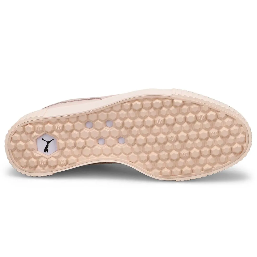 The Cali G rose bay Golf Shoe from Puma is designed with an Innovative outsole, providing the stylish profile appearance of a fashion-forward sneaker yet offering excellent recessed spikeless traction. Cali G has been re-engineered for the course, featuring a hidden traction outsole, a ProFoam cushioned midsole, a removable footbed, and a full grain leather upper.