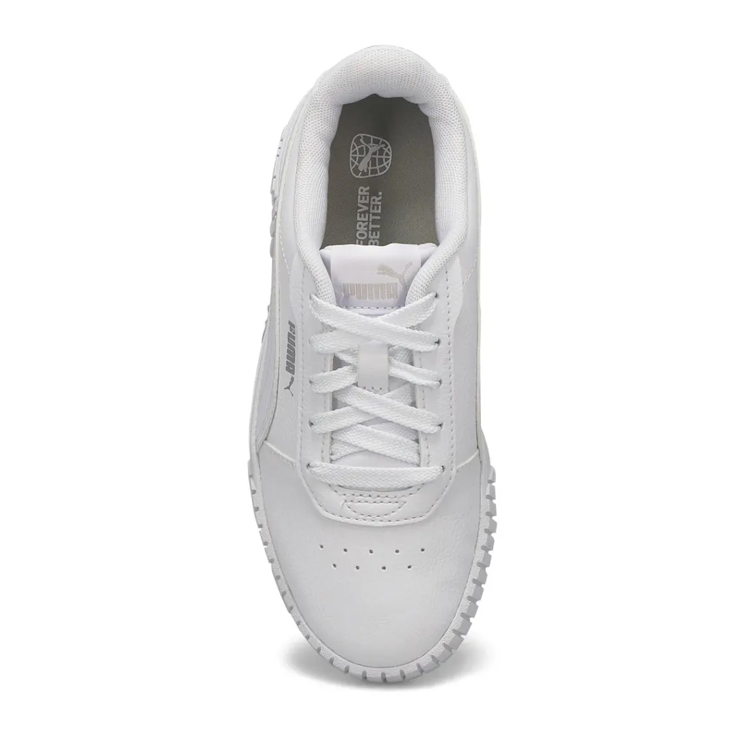 Carina 2.0 PSsneakers by Puma are inspired by styles from the 80s, in a new tennis silhouette interpreted to fit today’s laid-back sneaker look of Californian beach towns. Wider vertical lines as well as a Puma logo on the heel add a young, street look. The synthetic leather upper contains a recycled component and is accented by a perforated vamp and the well-known Puma Formstripe. The SoftFoam+ sockliner provides superior cushioning and optimal comfort for every step of your child’s day.