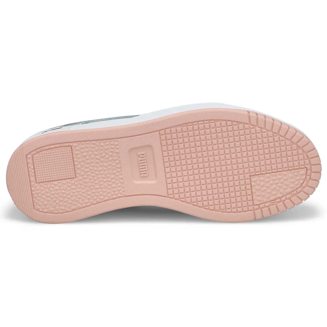 The Carina Street white/ gold sneaker from Puma features a streetwear-inspired design and a slightly elevated platform, making them your perfect choice for casual, everyday outfits. Upper of this shoe is made with at least 20% recycled materials as a step toward a better future. SOFTFOAM+: Step-in comfort sockliner designed to provide soft cushioning thanks to its extra thick heel.