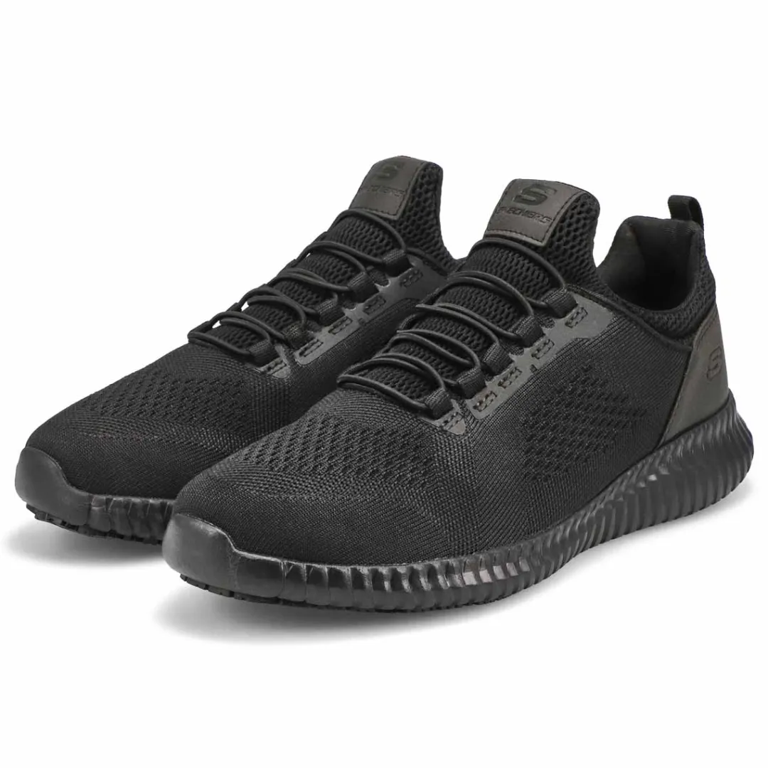 Refined sporty style and all-day protected comfort combine in the Skechers Work Relaxed Fit: Cessnock shoe. This slip-resistant sneaker features a smooth mesh knit upper with a slip-on bungee-laced front and cushioned Memory Foam insole. Water and stain-resistant athletic mesh upper. Relaxed Fit design for a roomy comfortable fit. Slip-resistant traction outsole with oil resistance. Electrical Hazard (EH) – ASTM F2413-2011-approved for safety.