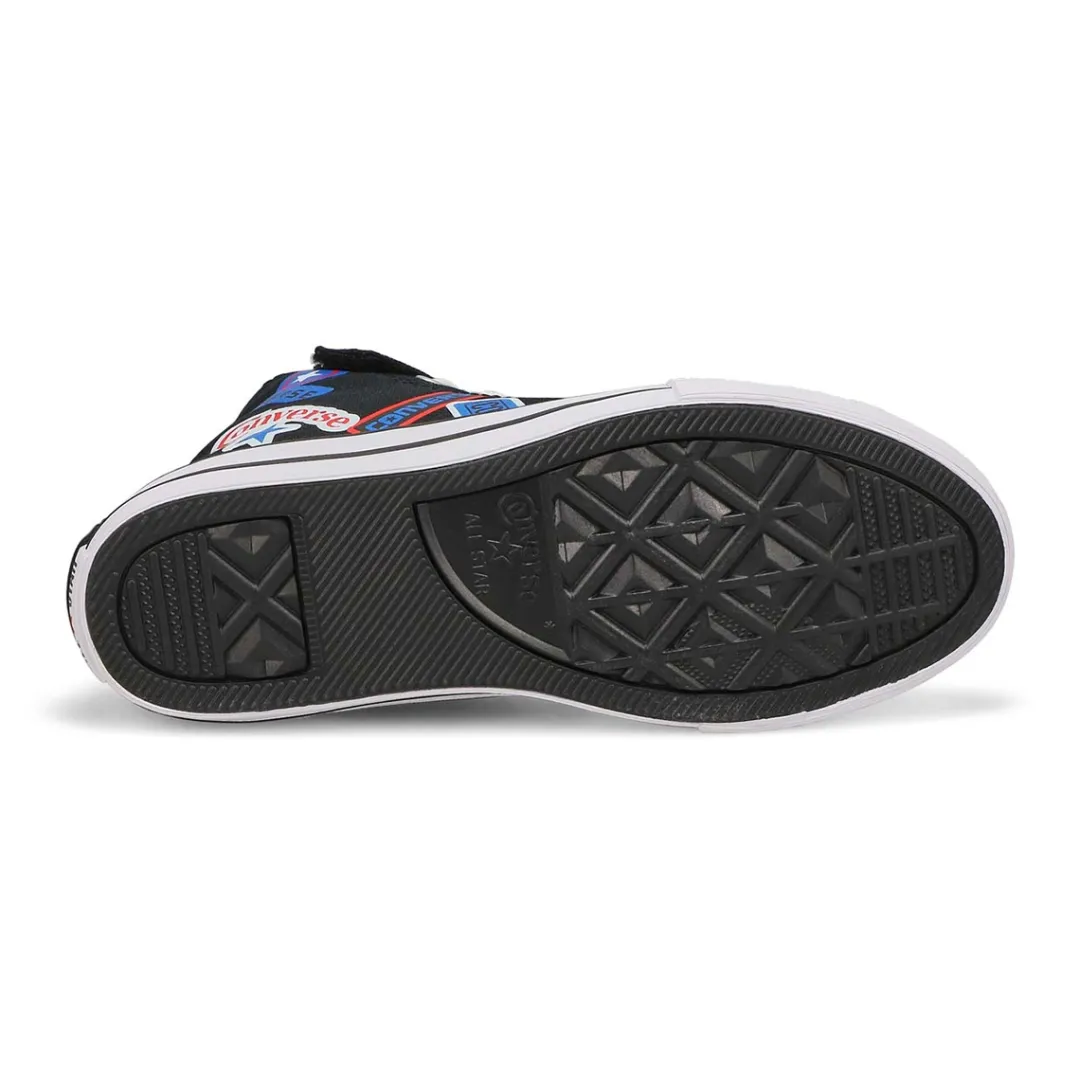 Add a playful sticker style to their look with the new Chuck Taylor All Star 1V Hi Top Sticker Stash black/ fever dream/ blue sneaker from Converse! These hi top Chucks feature allover sticker-themed graphics set against a soothing pastel canvas upper. Durable rubber outsole with signature diamond tread provides flexible traction.