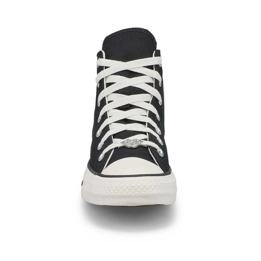 A Little 2000S Love. The Chuck Taylor All Star Lift BEMY2K Hi Top Platform sneakers from Converse has tiny hearts and metallic details that read like a love letter to Y2K. A small heart inside the ankle patch gives you standout style Cupid would envy. Durable canvas upper for that classic Chucks look and feel.