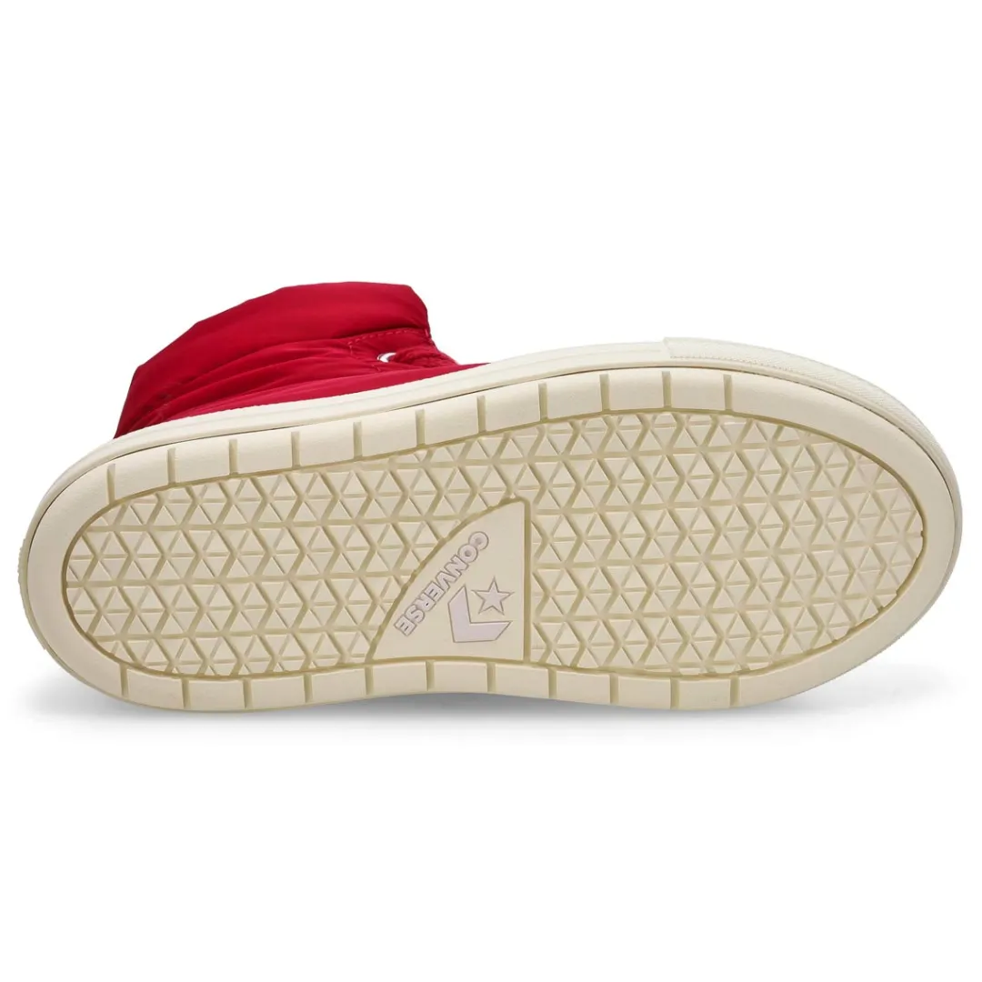 Toasty as a sleeping bag, cool as your favourite Chucks. The cozy Chuck Taylor All Star Elements Winter Boots From Converse, brings the heat—in style and function. Plus, oversized details give every ‘fit a dramatic edge. A water-repellent, insulated polyester upper helps keep you warm and dry. Cozy fleece lining helps lock in warmth. Traction rubber outsole helps provide grip on wet and slippery surfaces.