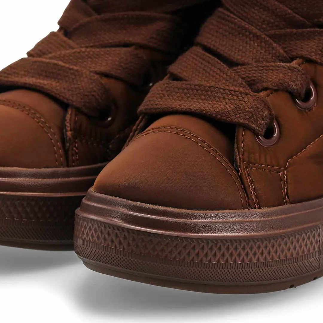 Toasty as a sleeping bag, cool as your favourite Chucks. The cozy Chuck Taylor All Star Elements Winter Puffer Boots from Converse brings the heat—in style and function. Plus, oversized details give every ‘fit a dramatic edge. A water-repellent, insulated polyester upper helps keep you warm and dry. Traction rubber outsole helps provide grip on wet and slippery surfaces.