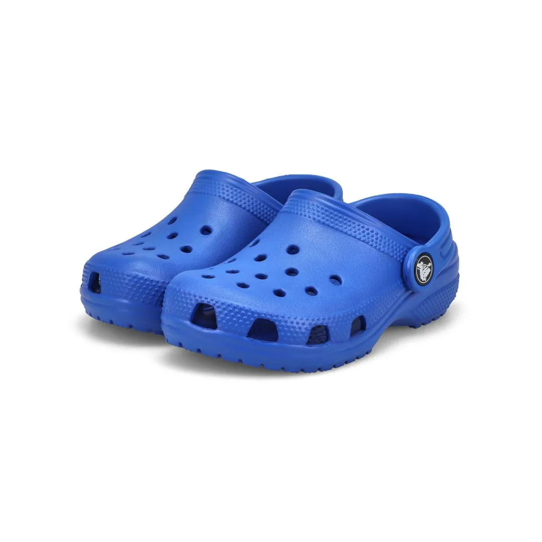Your little one will be happy walking on the beach, or walking anywhere in the Crocs original Classic EVA clogs that are the most comfortable and versatile shoes. Ultra-hip Italian styling with a heel strap that can be rolled forward or left behind. Vented so air passes through, keeping feet cool. Molded footbed is bacteria and odor resistant.