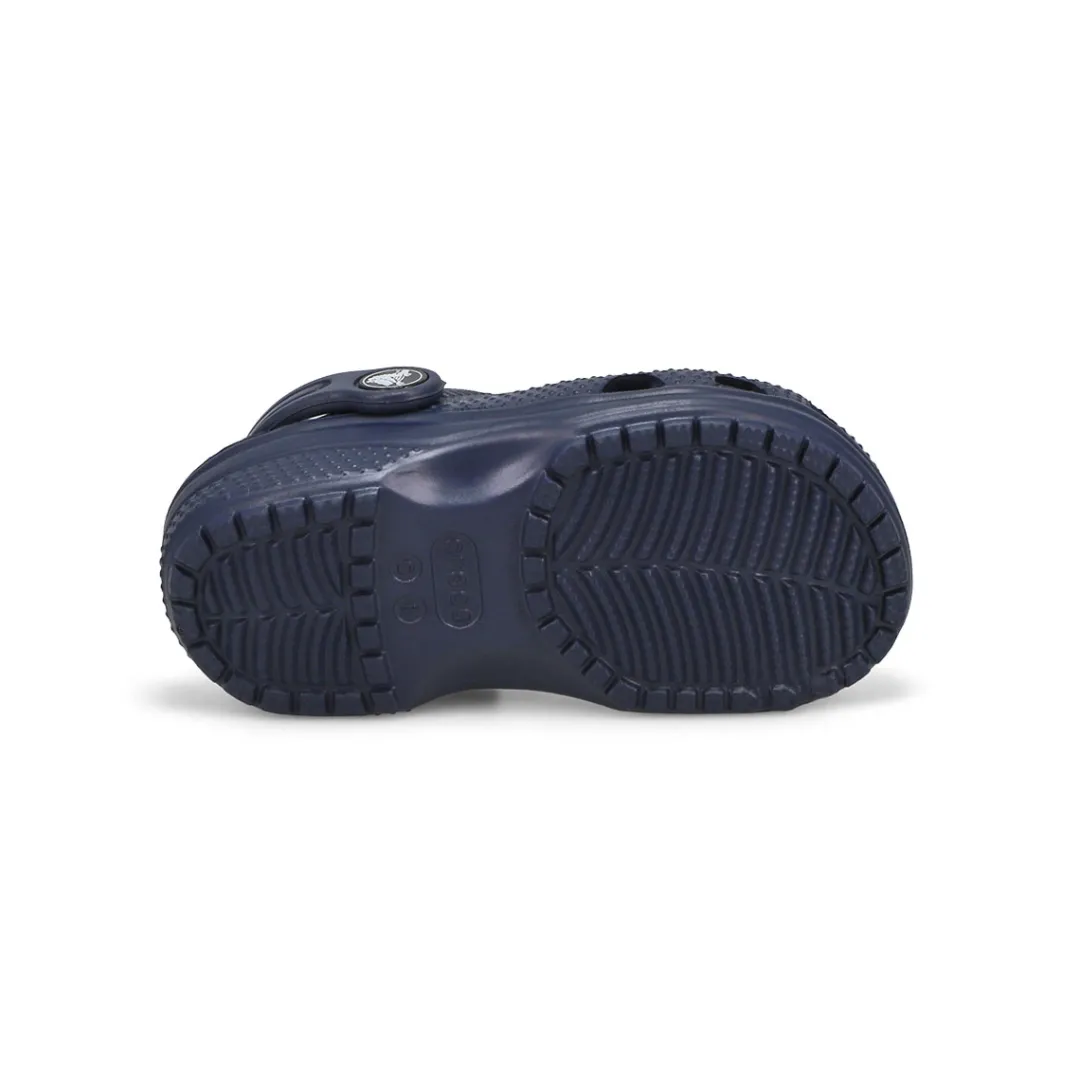 Your little one will be happy walking on the beach, or walking anywhere in the Crocs original Classic EVA black clogs that are the most comfortable and versatile shoes. Ultra-hip Italian styling with a heel strap that can be rolled forward or left behind. Vented so air passes through, keeping feet cool. Molded footbed is bacteria and odor resistant.