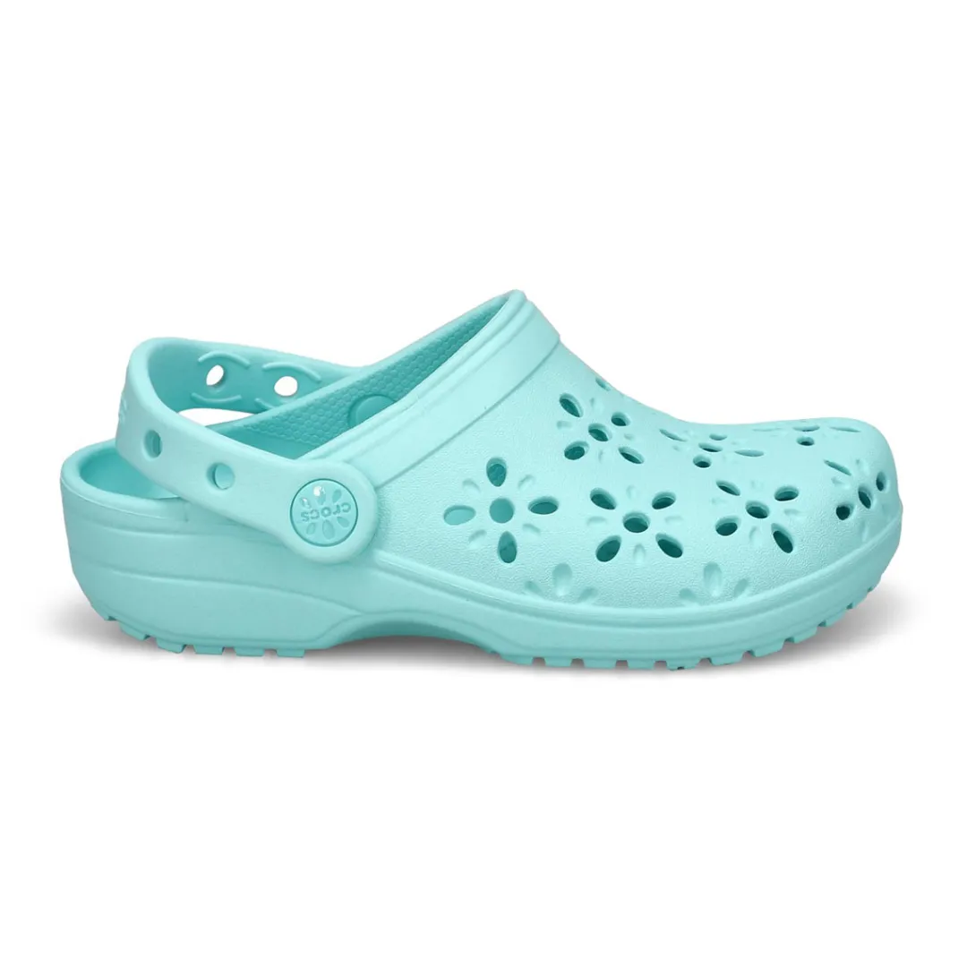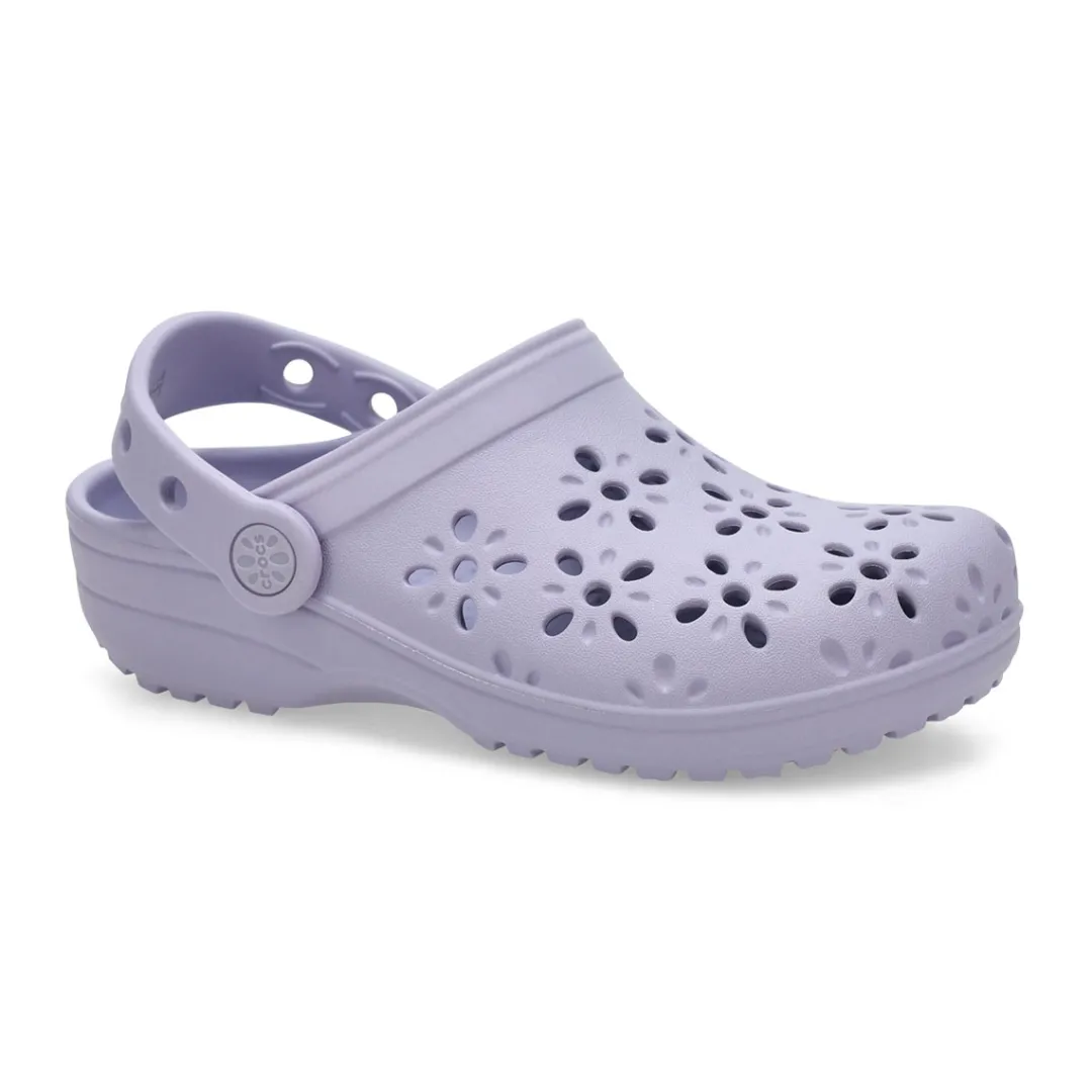 The Classic Clog with a fresh, new twist! This new evolution of Crocs clog features floral-inspired cutouts that provide a joyful, fun look, plus matching floral rivets that unify the design. You’ll still enjoy the fully-molded lightweight construction and iconic comfort of the original, and you can still add personalization with Jibbitz charms. It’s the irreverent, go-to comfort shoe that your little one will love — now with a fun, floral update!