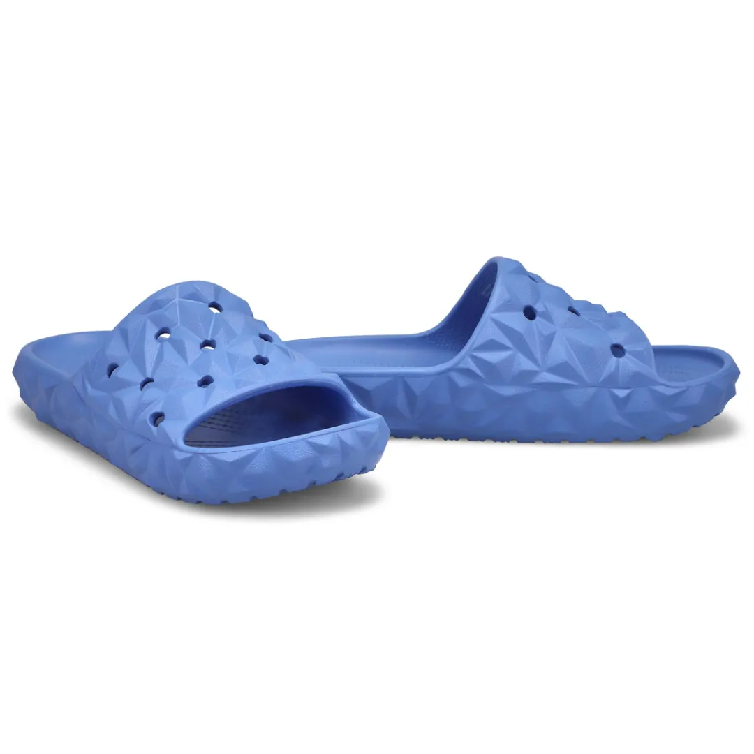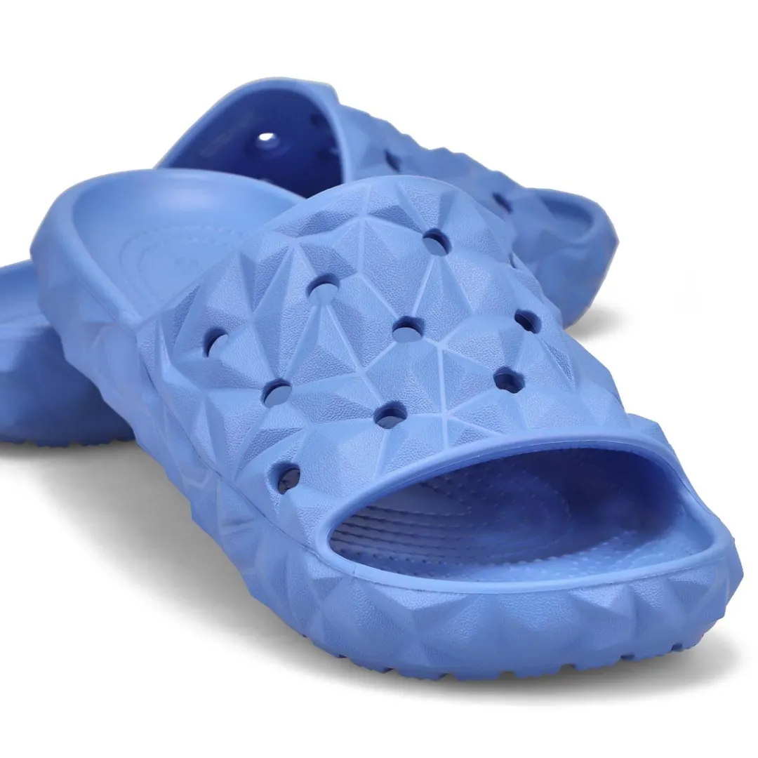 A geometric molded design provides extra style to the Classic Geometric slide sandal from Crocs. The unique design and finish helps you show off your creative spirit, and Croslite foam construction keeps them light and easy to wear. Grounded in comfort, spiked with personality. A must-have on your list this season!