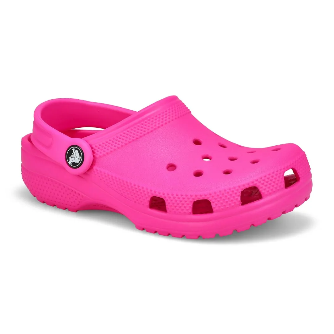 Your little one will be happy walking on the beach, or walking anywhere in the Crocs original Classic EVA clogs that are the most comfortable and versatile shoes. Ultra-hip Italian styling with a heel strap that can be rolled forward or left behind. Vented so air passes through, keeping feet cool. Molded footbed is bacteria and odor resistant.