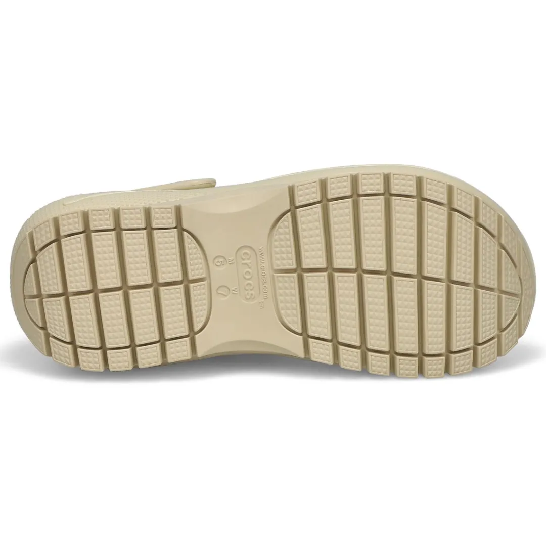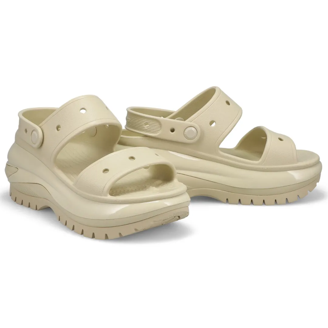 The look and feel of Crocs Classic Mega Crush Clog is now available in sandal form. Introducing the Classic Mega Crush Sandal, featuring an enhanced rubber tread, updated detailing around the outsole and a platform ready to take any outfit to the next level. A two-strap upper and secure backstrap help ensure a secure fit, while boasting holes for personalization with Jibbitz charms.