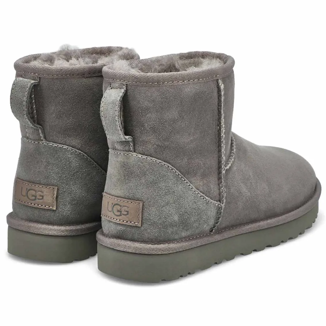 The Classic Mini II dusted cocoa boot from UGG Australia adds some casual cool to your everyday look. Featuring a genuine sheepskin upper that is water and stain resistant. UGGpure wool insole with reinforced heel, raw seams. New Treadlite by UGG outsole provides increased traction and durability. Please be advised, boots are not made for snow and ice or heavy walking.
