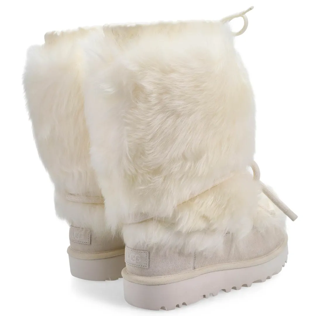 Snowflakes, ski trips, and wintertime bliss, that’s what UGG’s Classic Tall Chalet is made of. Inspired by nostalgic moments in the mountains, this fluffy boot has a genuine sheepskin upper and overlapping, round laces. The interior is lined with our signature UGGplush, while the outsole is made with lightweight sugarcane EVA. From fireside chats to winter window shopping, our Classic Tall Chalet will have you feeling like a real-life snow angel.