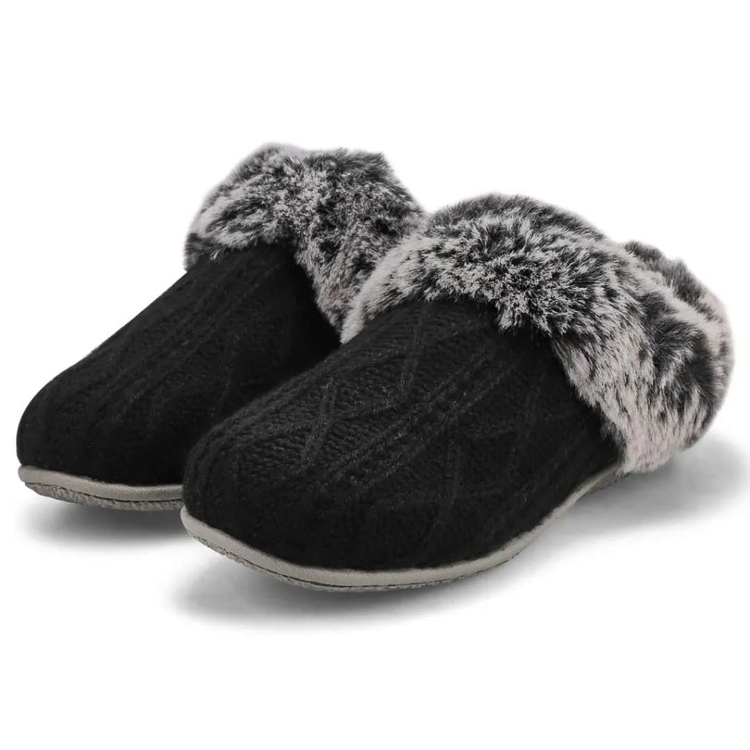 You will love the comfort and the warmth provided by the Clipper Knit Faux Fur memory foam slipper from SoftMoc. Easy slip on silhouette styling. There is nothing so easy as slipping into these slippers, and you will love how the memory foam insole molds and conforms to your foot. The lightweight EVA outsole will ensure that you feel secure as you walk your home in comfort!