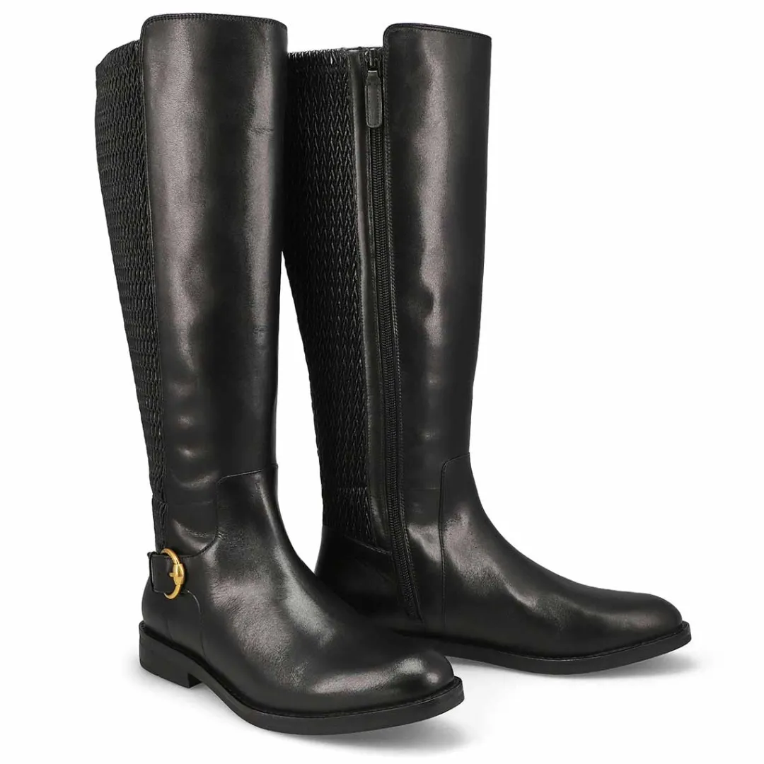 The timeless Clover Stretch black Tall Boots from Cole Hann is something you’ve search for season after season. The knee-high boots are crafted with a leather upper with a stretch woven back panel and inside zipper. With a gleaming buckle detailing for added flair. Arch-supporting cushioned footbed adds comfort to every step.