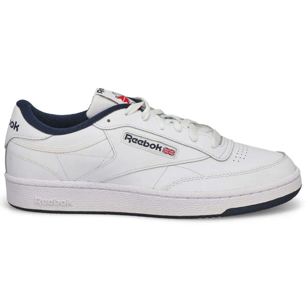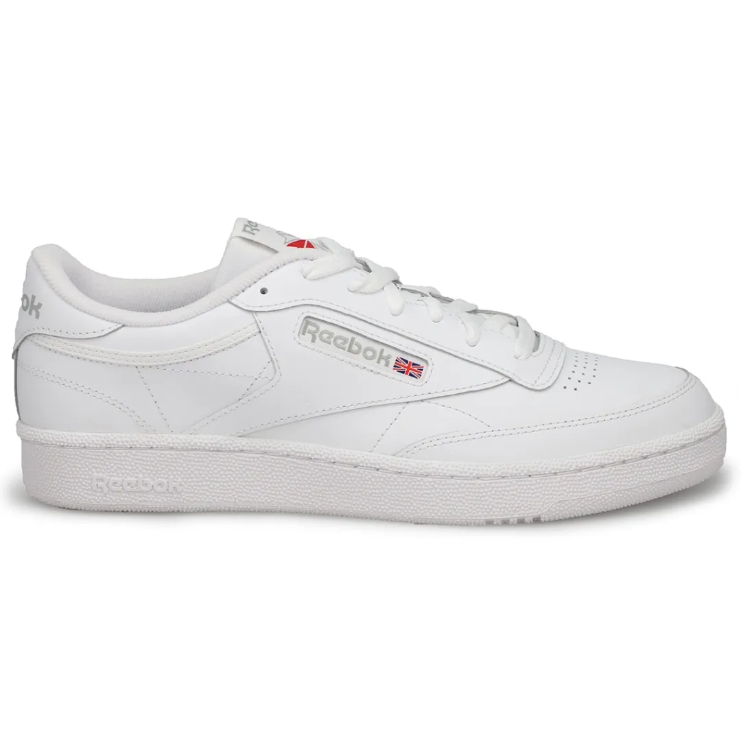 Clean, minimalist design. The Club C 85 white/grey tennis-inspired shoes from Reebok keeps your look sleek and simple. Pops of subtle contrast color adds a chic touch. A Reebok logo window with a Union Jack gives them old-school style. The upper is made of soft, flexible leather. There’s nothing quite like a fresh white sneaker!