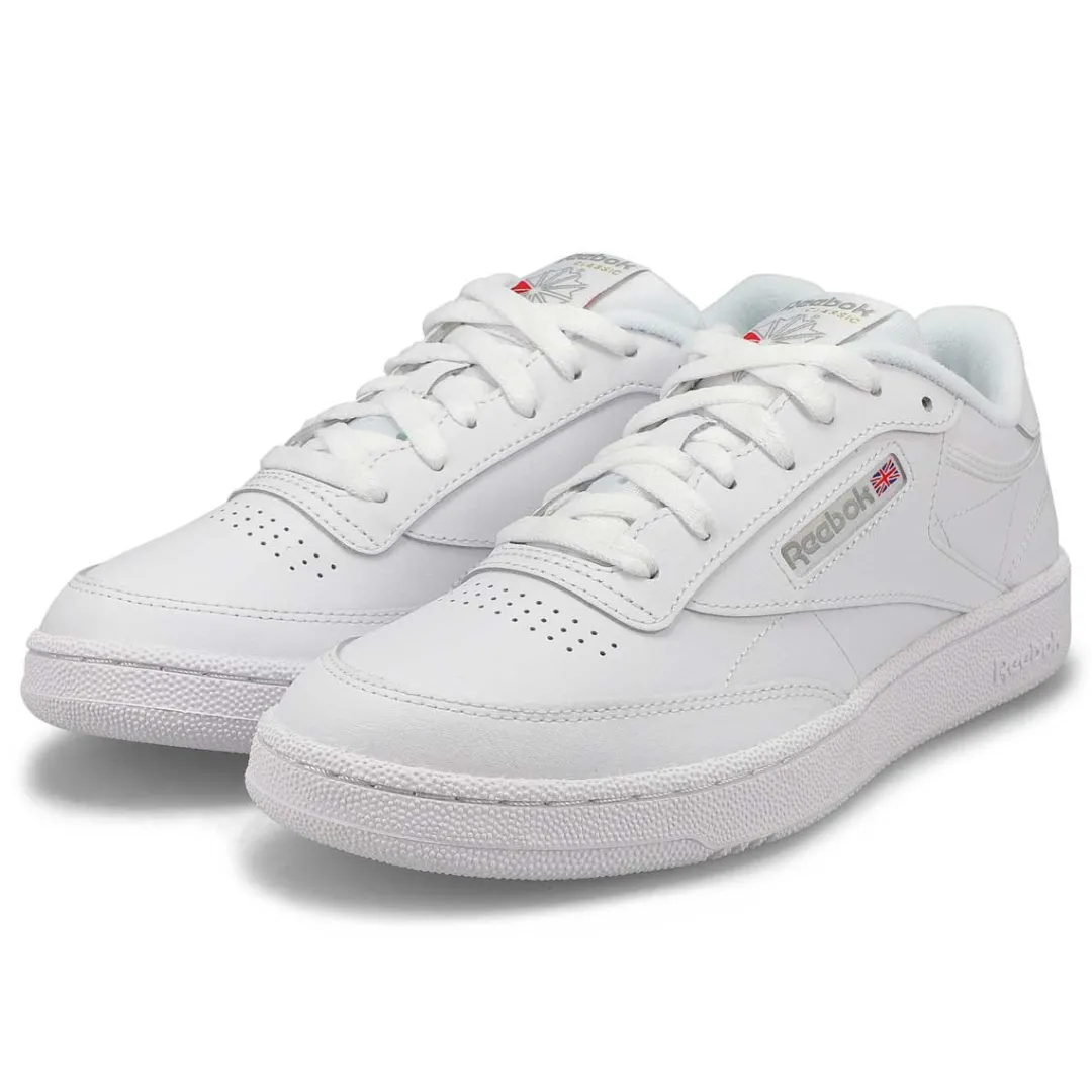 Clean, minimalist design. The Club C 85 white/ royal tennis-inspired shoes from Reebok keeps your look sleek and simple. Pops of subtle contrast color adds a chic touch. A Reebok logo window with a Union Jack gives them old-school style. The upper is made of soft, flexible leather. There’s nothing quite like a fresh white sneaker!